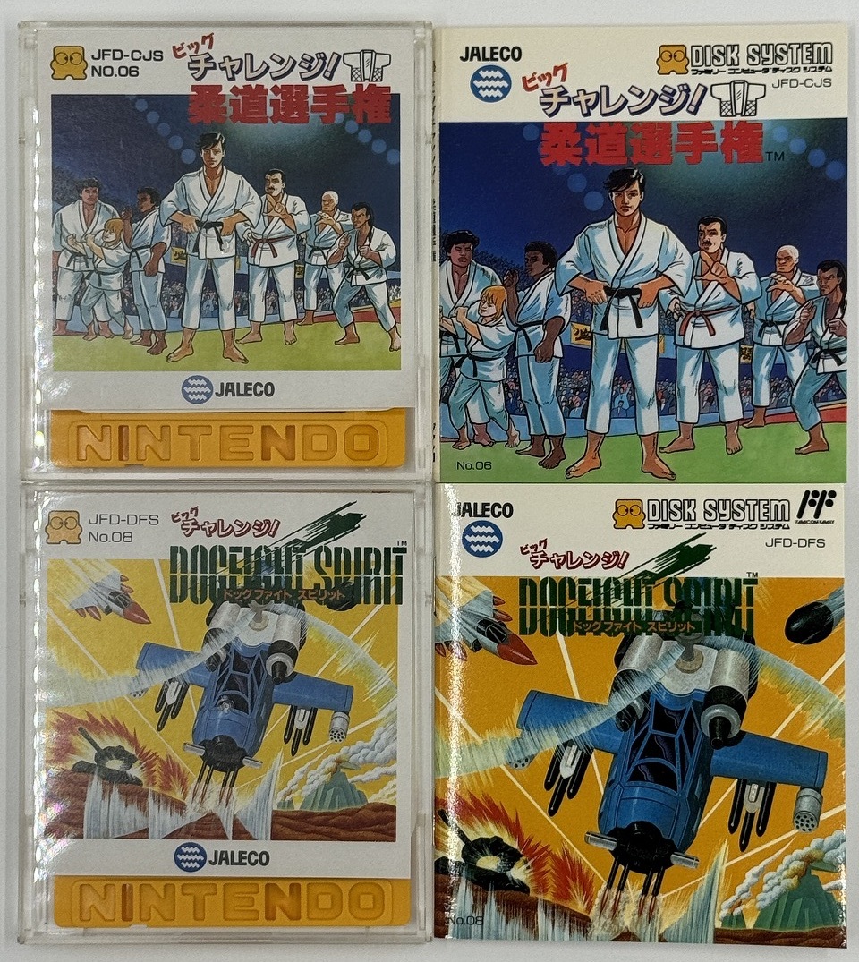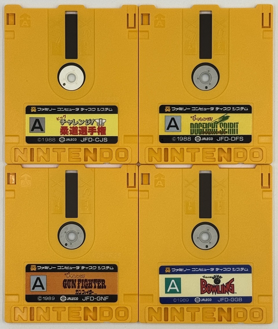 商品名:ビッグチャレンジ! 柔道選手権/ ドッグファイト スピリット/ ガンファイター/ GO!GO!ボウリング ファミコンディスク4枚SET 箱付き中古