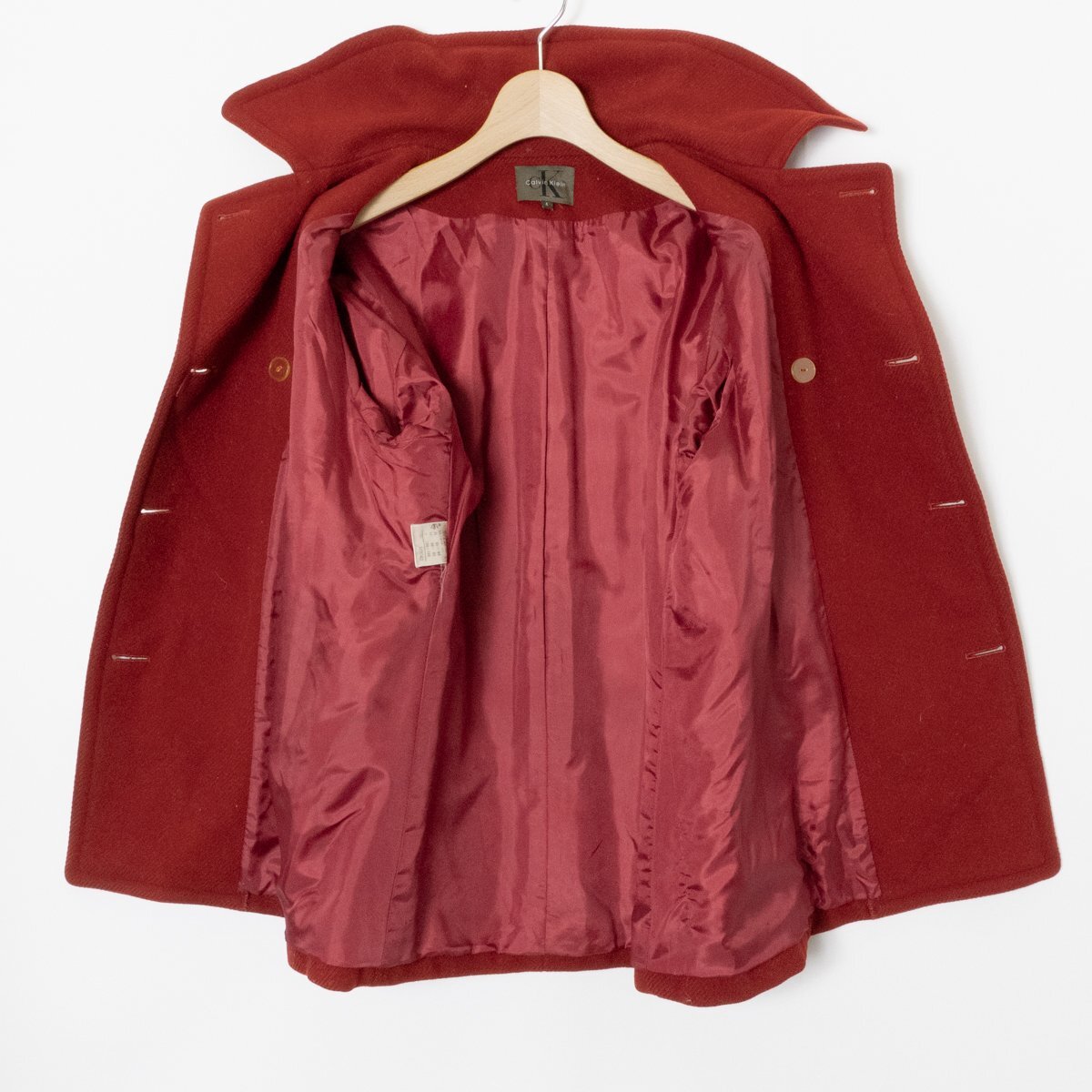 状態 | D 全体的に使用感、毛羽立ち・毛玉、薄汚れ、繊維や毛の付着、ボタンの端のかけ、背面裾に穴あき、袖口色抜け箇所と黒いと突出、裏地のシミ、品質タグの劣化がございます。 |