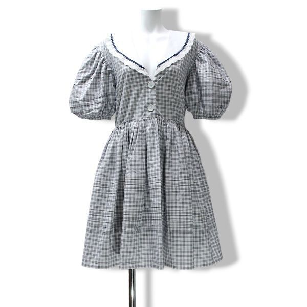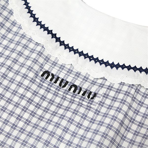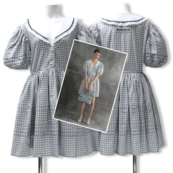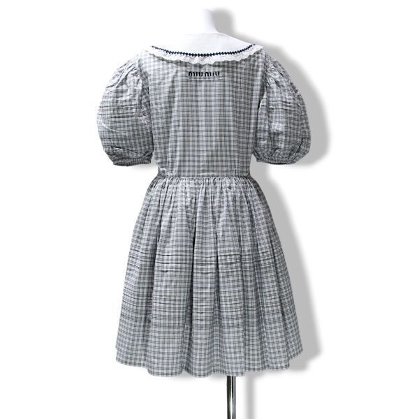 良品 国内正規品 miu miu ミュウミュウ MF4330 フレンチマリン セーラーカラー チェック ワンピース 38 イタリア製 定価324,500円