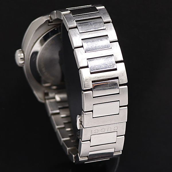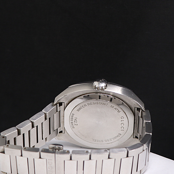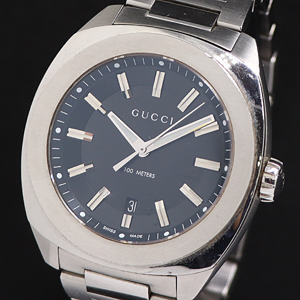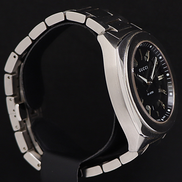 1円 稼働 グッチ 142.2 16633676 QZ ブラック文字盤 メンズ腕時計 1950300 9OKT KMR