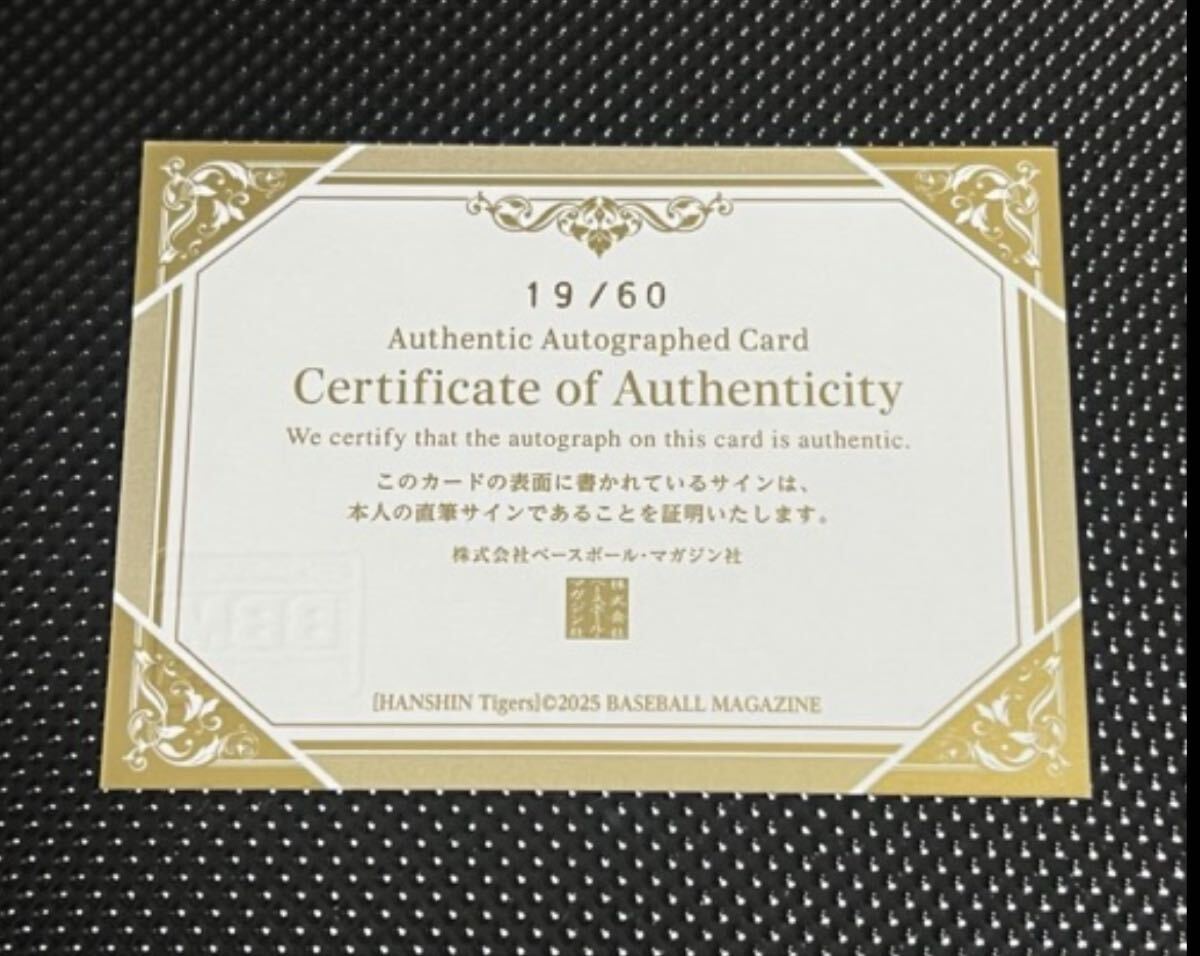 60枚限定 岩崎優 2025 BBM 阪神タイガース 直筆サイン Auto 19/60