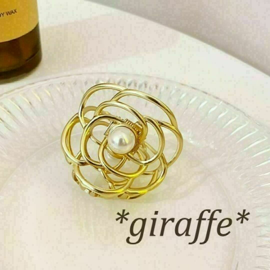 E062 バンズクリップ ゴールド フラワー お花 ヘアクリップ パール ハーフアップ まとめ髪 バレッタ ヘアアクセサリー
