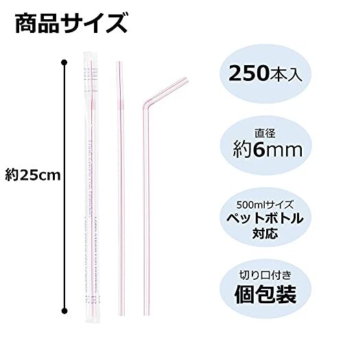 単品・クリアストライプ 直径約6mm×長さ25cm F-591・・Color:クリアストライプPatternName:250本・【 ストロー ロング 】500mlのペットボトルに入れたままキャップが閉められるロングタイプのストローです。・【 個包装 】透明OPPポリ袋入りなので、水に濡れても破れず清潔に使用でき、衛生的に保管できます。・【 大容量 】業務用として、またご家庭でもご使用いただけます。・本体サイズ:約直径0.6×長さ25cm・本体重量:0.001Kg説明 ●500mlのペットボトルに入れたまま、キャップが閉められるロングタイプのストローです。 ●たっぷり使える、250本入り。 ●個包装なので、清潔に使用できます。 ●切り口がついているので、取り出しが簡単です。 ●使いたい部分をカットして使用することも可能です。 ●色々な大きさのカップにご使用いただけます。(画像はそのままの長さです)