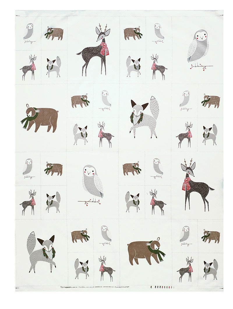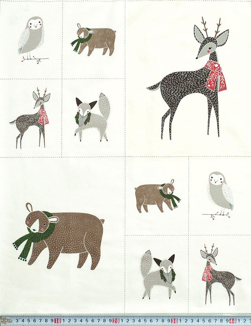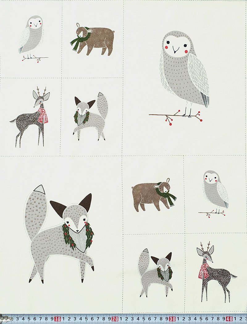 フクロウ、狐、クマ、鹿がモチーフのパネル柄。