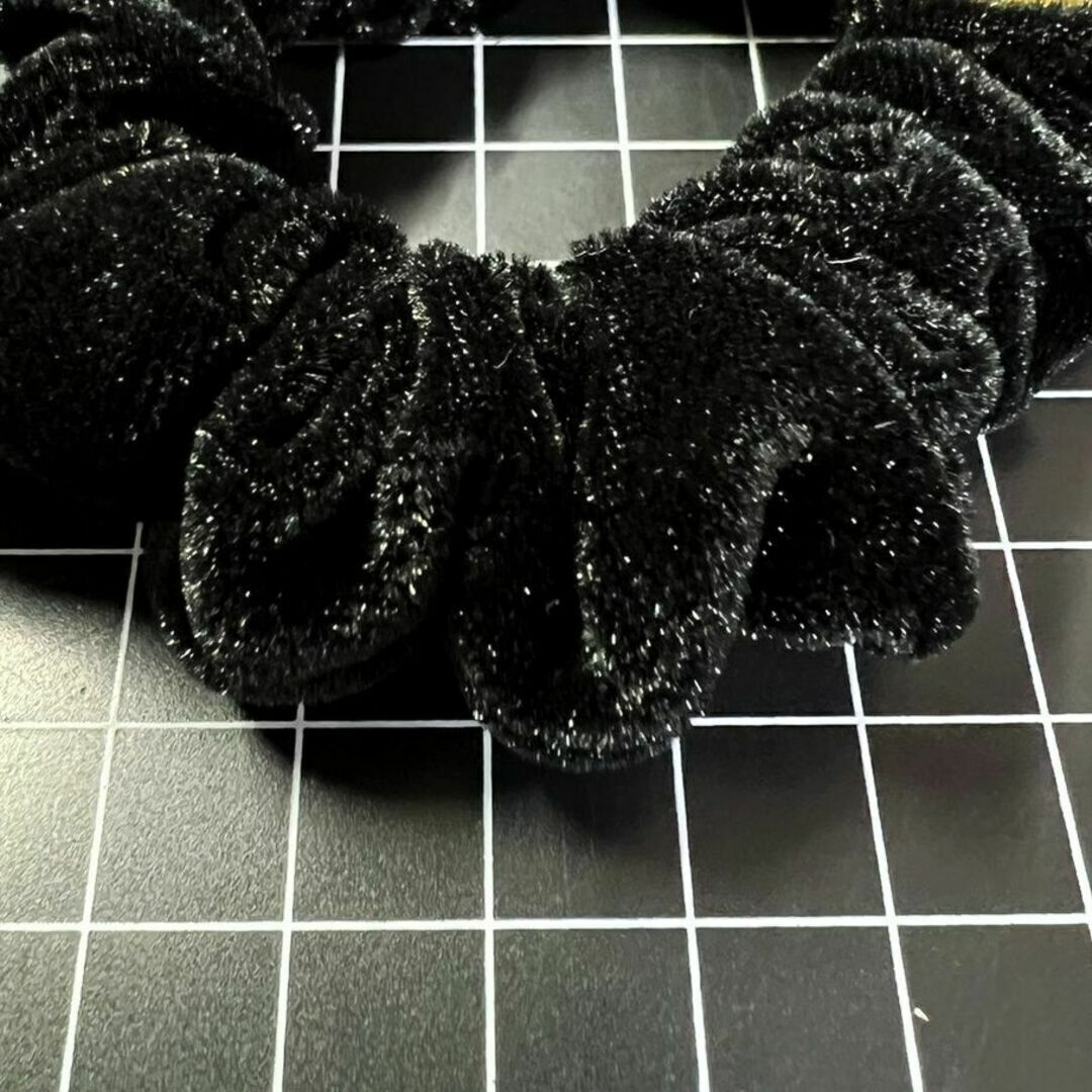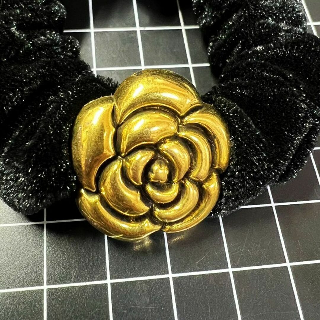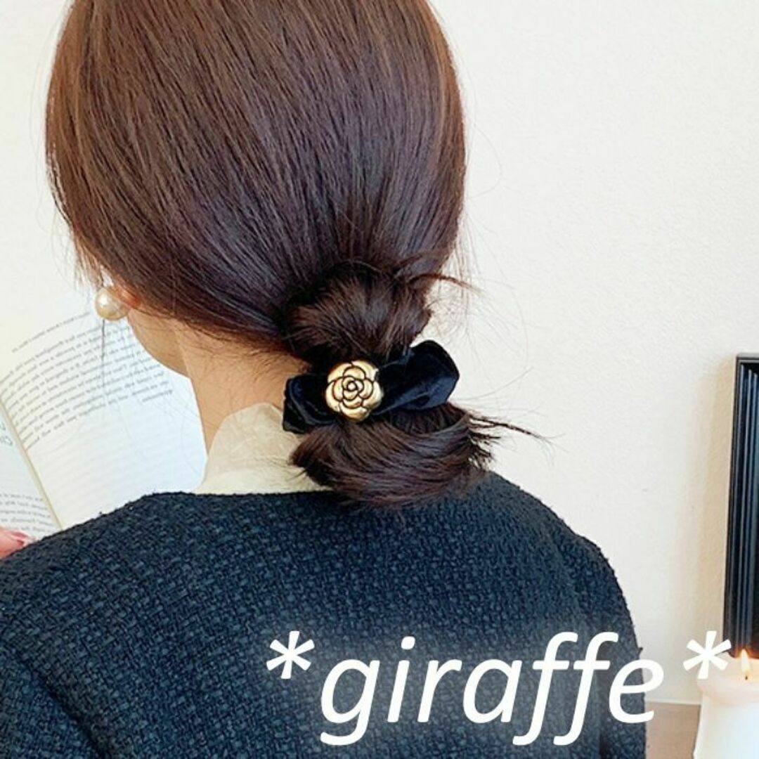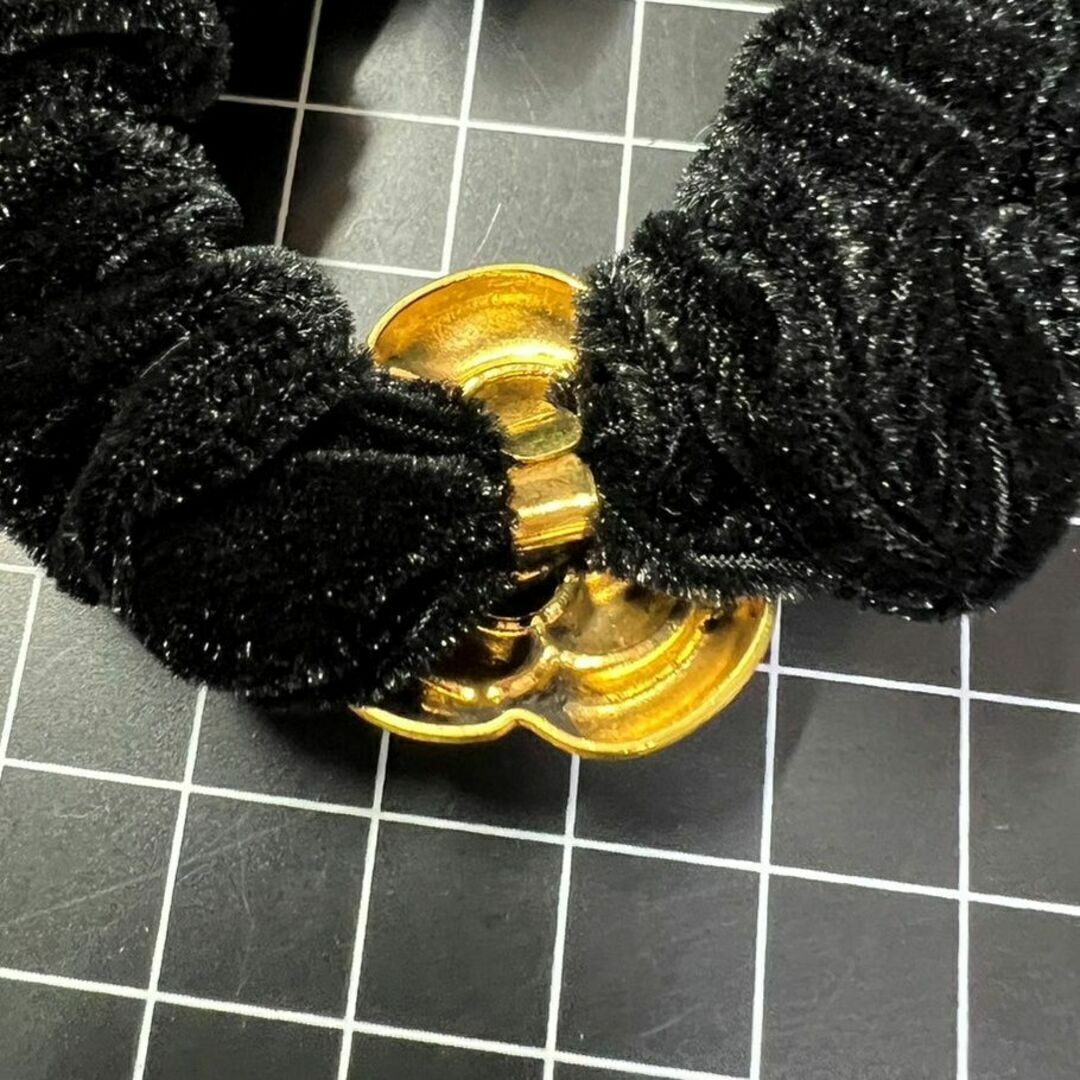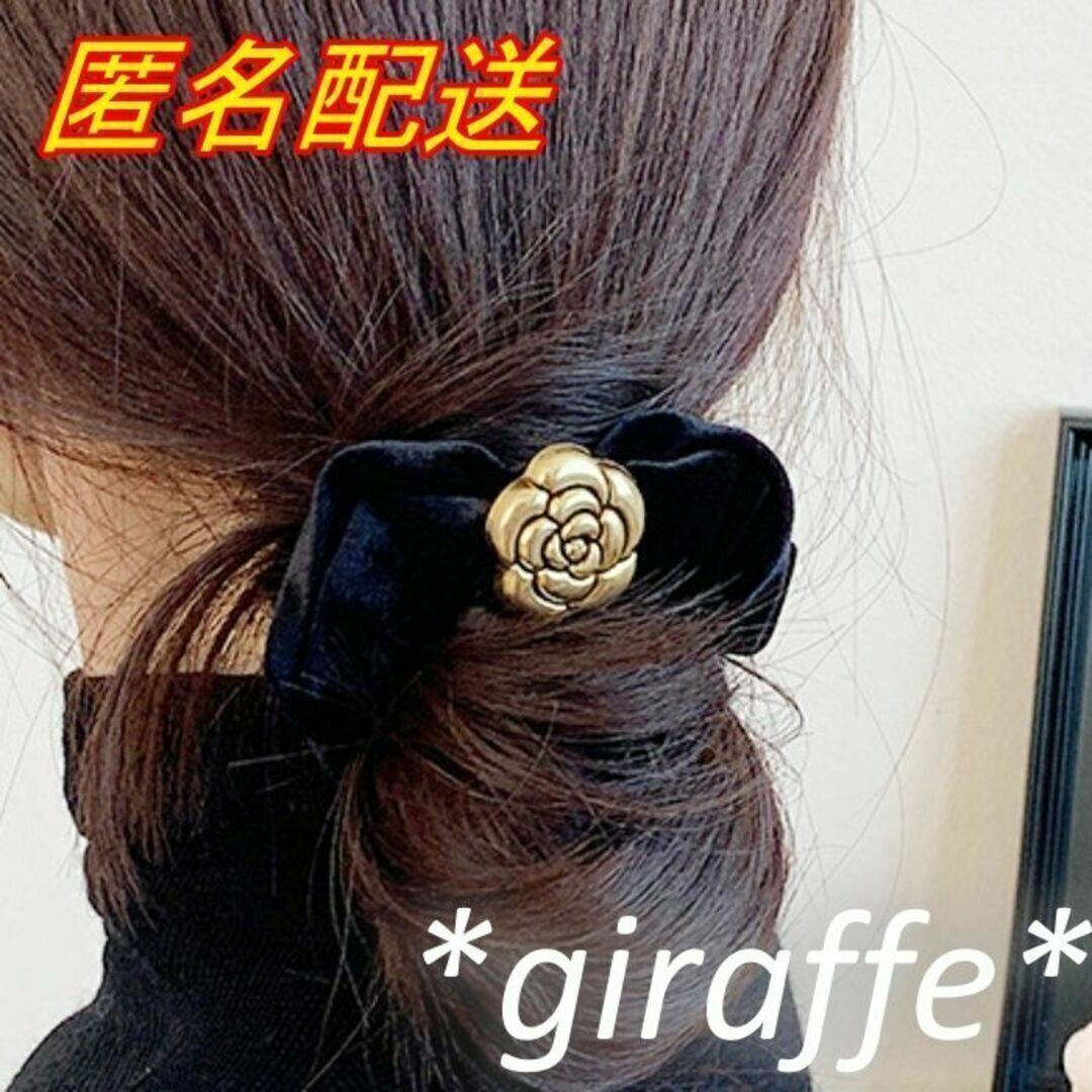 E196 匿名配送 シュシュ レトロ フラワー モチーフ ブラック ゴールド 髪ゴム ヘアアクセサリー 髪留め 一つ結び ハーフアップ