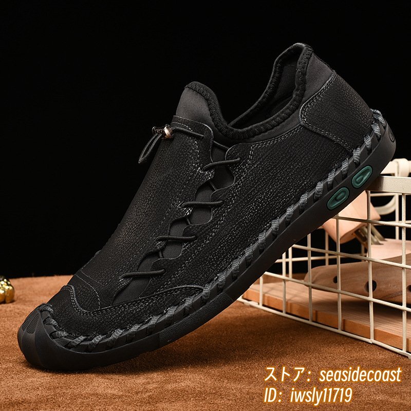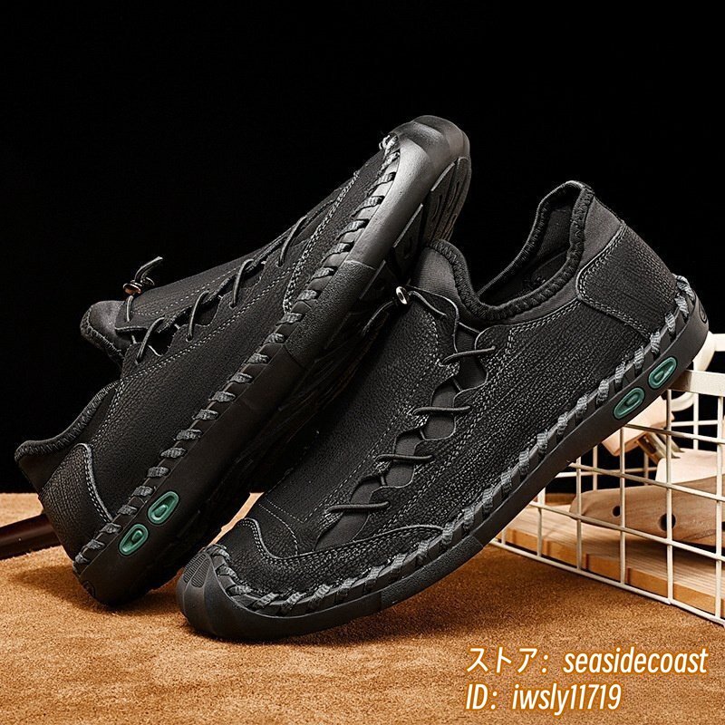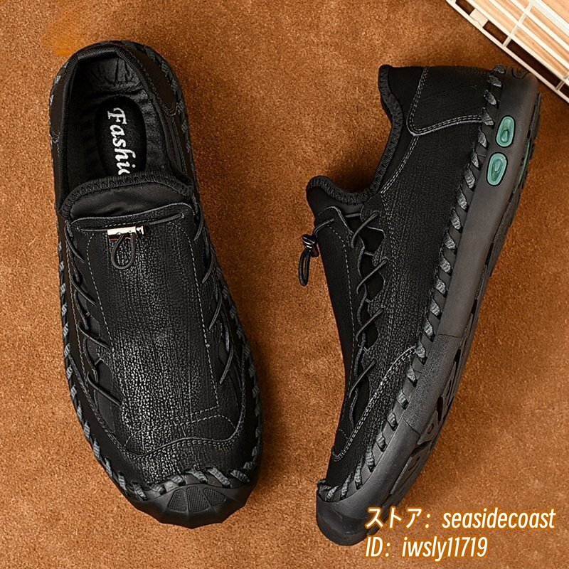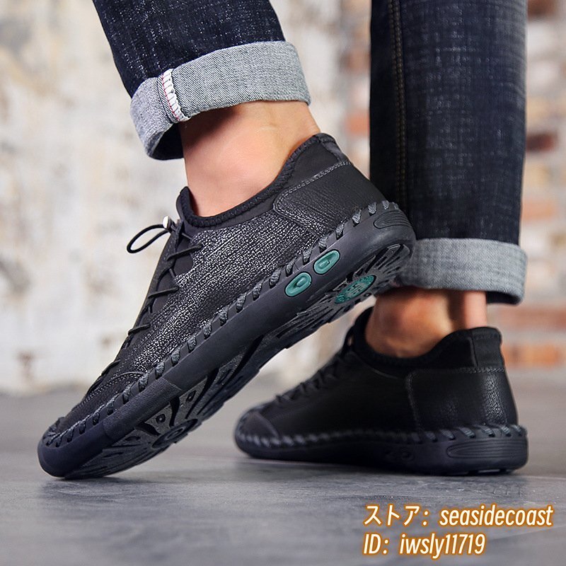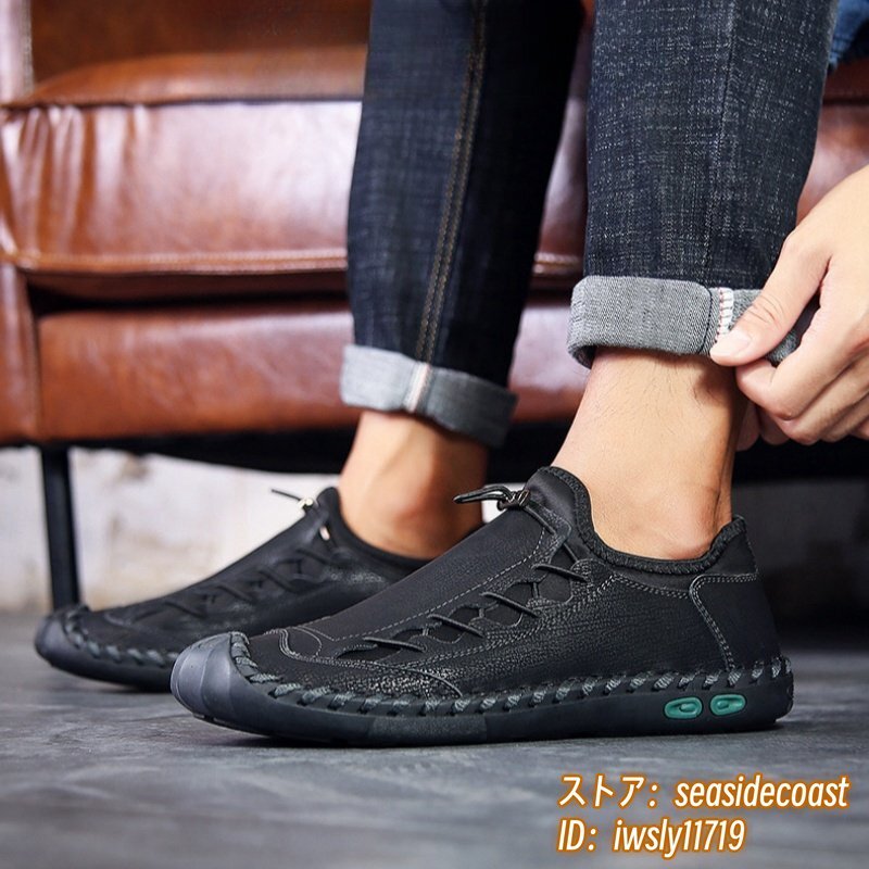 人気新品■ウォーキングシューズ メンズ ローファー 本革 レザーシューズ 軽量 スニーカー 高級 スリッポン 紳士靴 通気性 ブラック 27.0cm