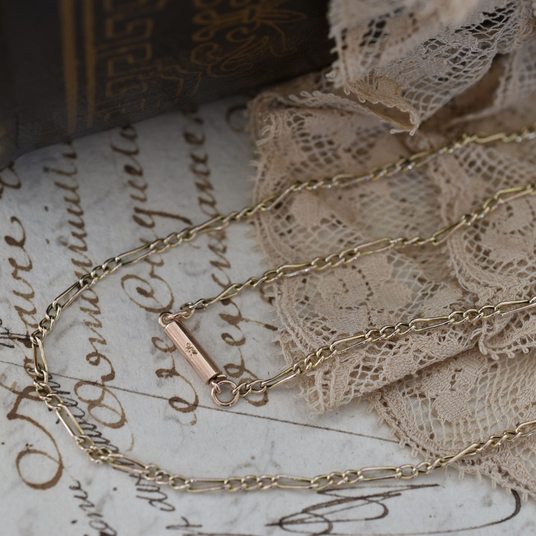 19世紀末から20世紀初頭にかけて作られた、9ctゴールドのフィガロチェーンです。