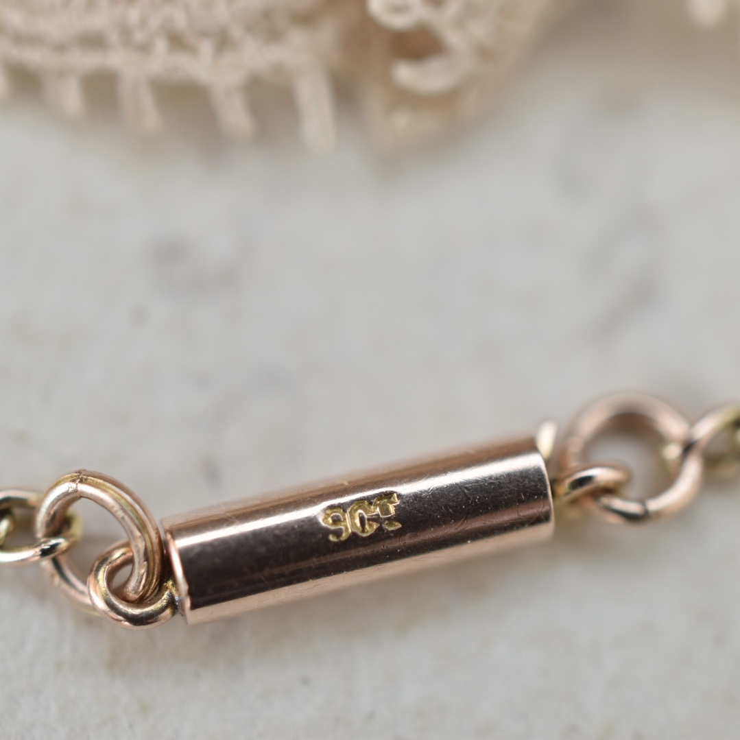 クラスプには当時の特徴であるバレルクラスプ(筒状の留め具)が残されており、現代の引き輪とは異なるアンティーク特有の味わいを感じさせてくれます。