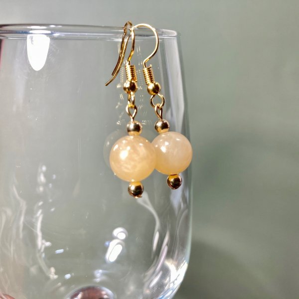 こちらは、10mm玉のアラゴナイトを使用した一粒フックピアスです。シンプルなデザインはシーン問わず、どんなコーディネートにも合わせ易く使い勝手がいいアイテムです。今回は一粒ピアスの要望が多かった為制作しました。気になる方は是非この機会にどうぞ。