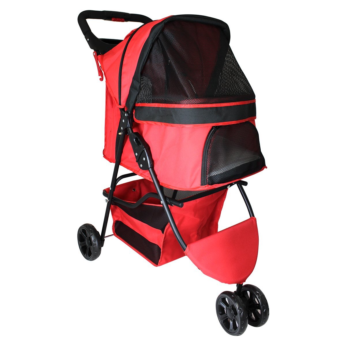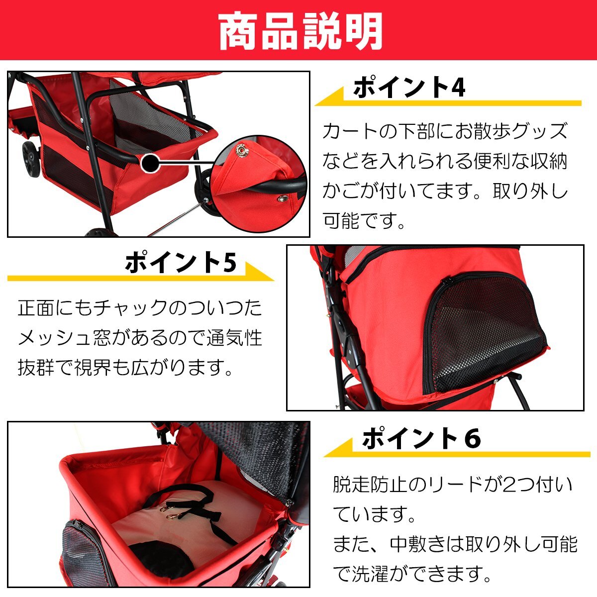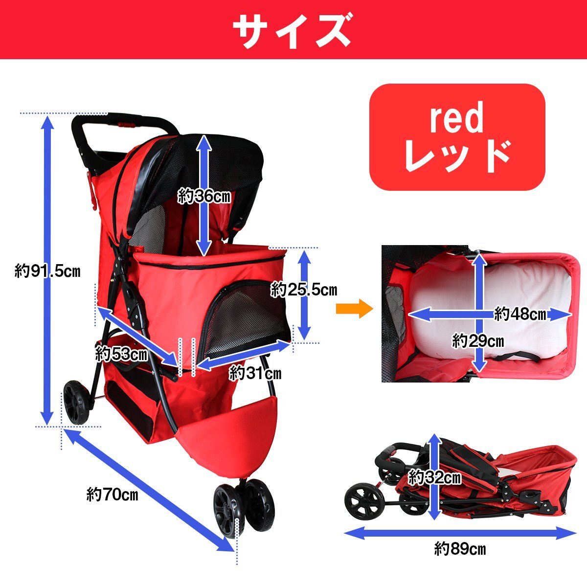 ペットカート キャリーカート 折りたたみ式 小型犬 中型犬 猫 レッド/赤 キャリーバッグ ドッグカート