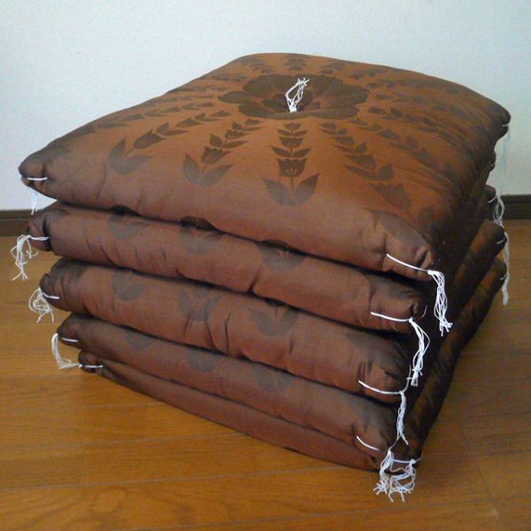 座布団 5枚組 茶系 59x54cm 和室 未使用 (I03-2)