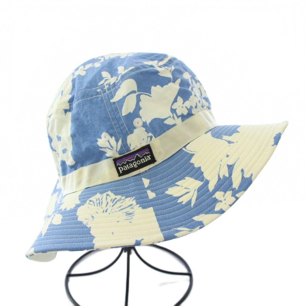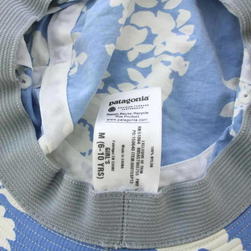 パタゴニア Patagonia バケットハット バケハ 帽子 花柄 総柄 ナイロン バイカラー M 水色 ライトブルー 白 ホワイト /BB キッズ