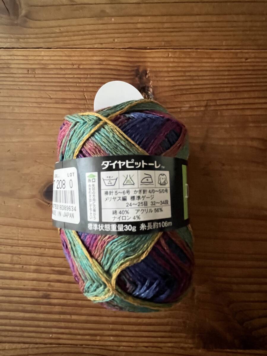 ピットーレは、綿 40% アクリル 56% ナイロン 4% 1玉 30g 糸長 約106m。