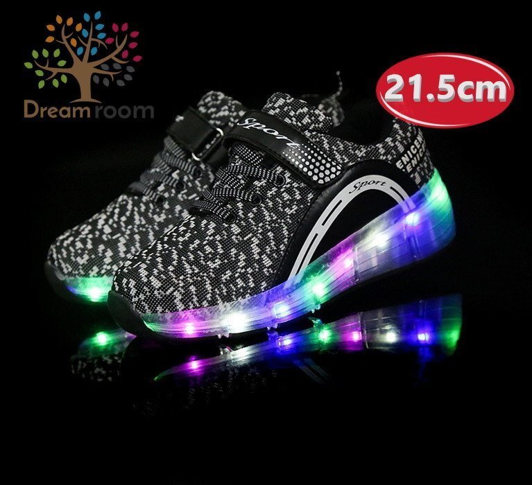 1スタ☆光る☆LED ライトアップスニーカー&ローラーシューズ 一体型 【K-166ブラック 21.5cm】夜間 スケート靴 反射材 ジョギング 自転車