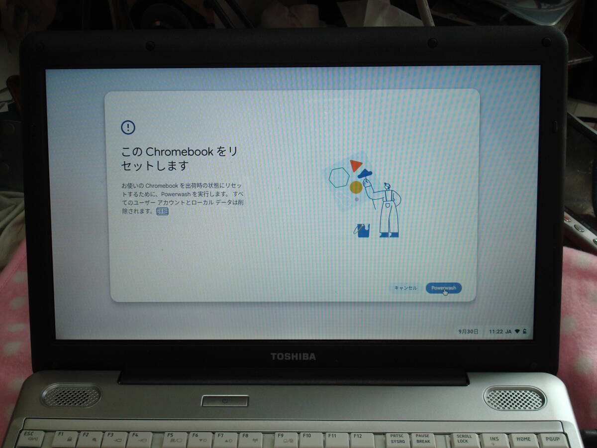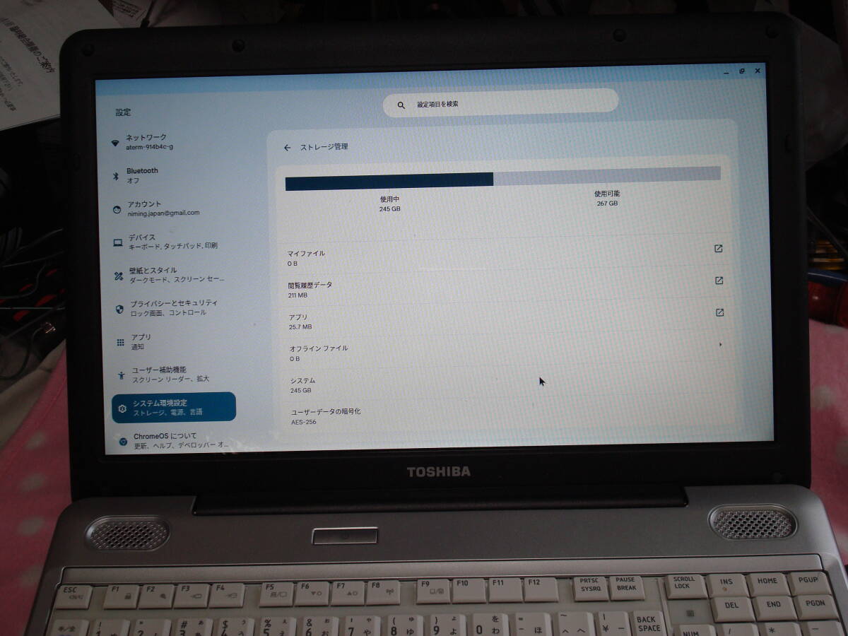 大変綺麗なWindows10のTOSHIBA 15.6型LED液晶パネル dynabook BX/51L は入った、Windows11にアップグレードするにはややパワー不足ですので、ChromeOS flex機にすることにしました。