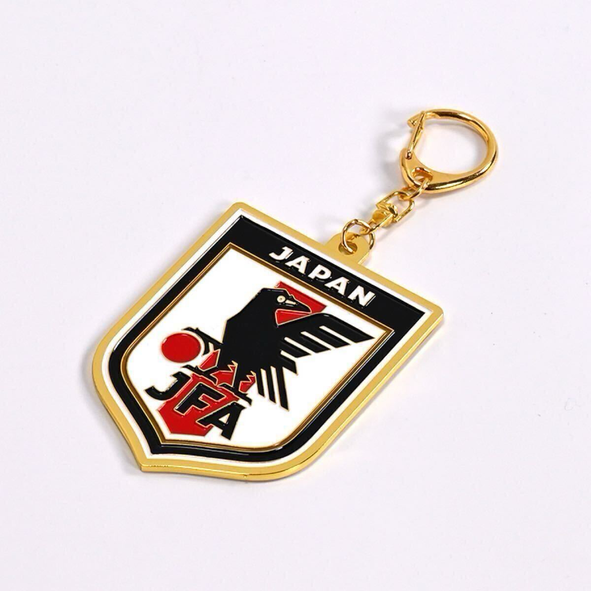 日本代表エンブレムのキーホルダー。ゴールドのベースカラーに色差し加工でエンブレムを施した、高級感のある仕様です。