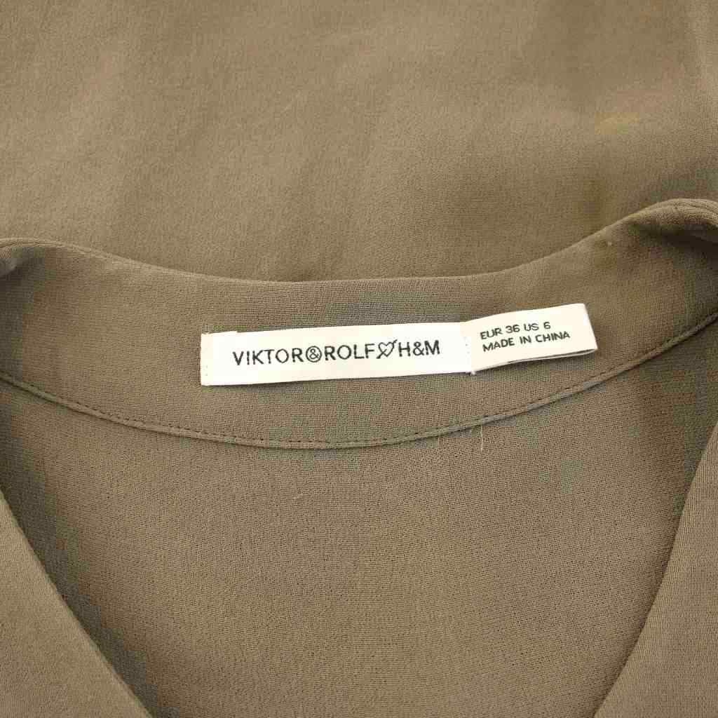 ヴィクター&ロルフ VIKTOR&ROLF H&M シャツワンピース ミモレ ロング 半袖 シルク フリル US6 グレージュ 674060
