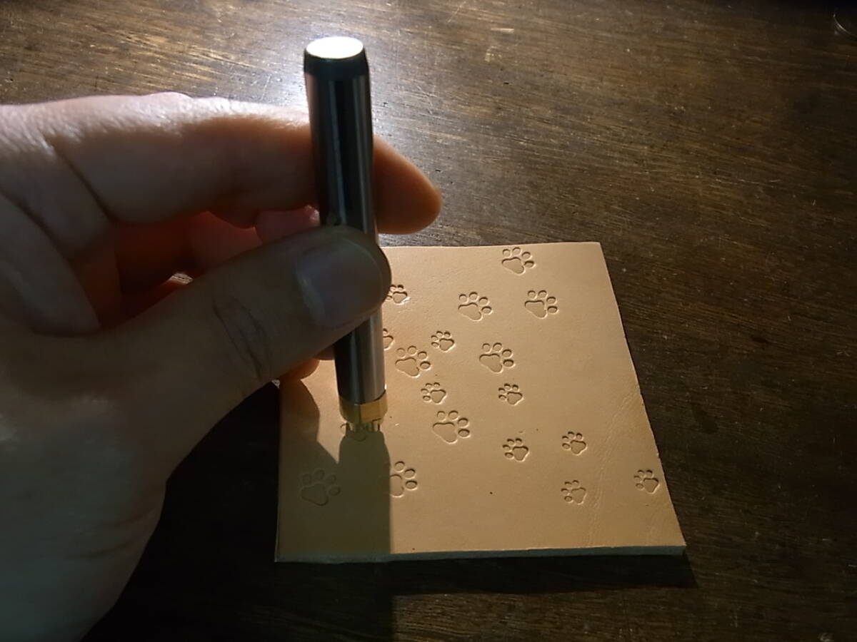 少し水で湿らせたヌメ革に刻印できます。