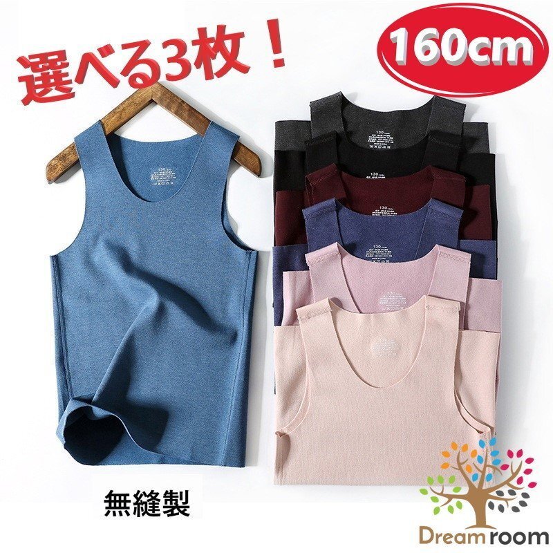 選べる3枚☆吸湿発熱 トップに響かない シームレス タンクトップ【160cm】インナー 無縫製 下着 起毛 K-286