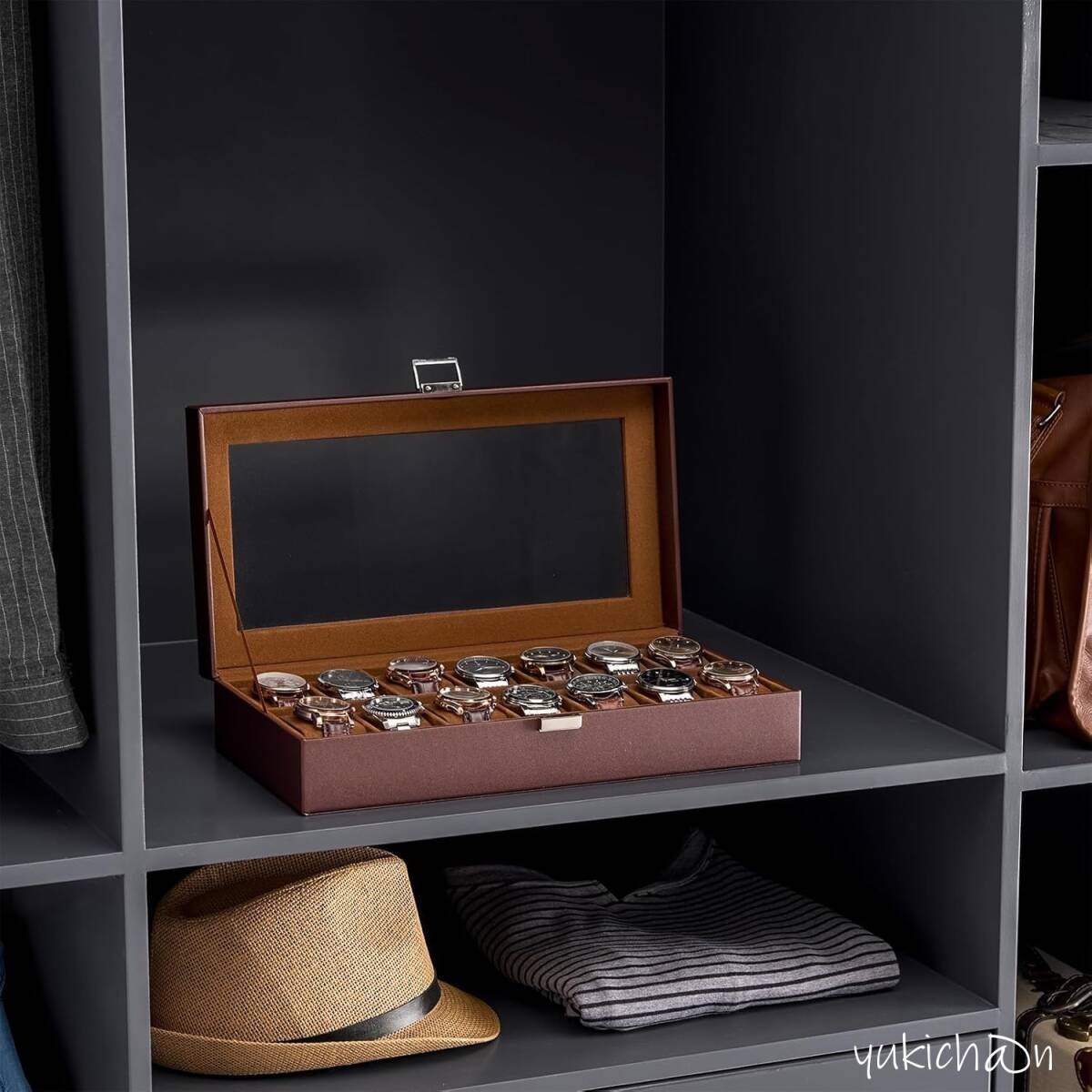 腕時計ケース ウオッチボックス 男女兼用 収納ボックス 14本 エスプレッソ PU製 アクセサリーケース アクセサリー ディスプレイ 小物整理