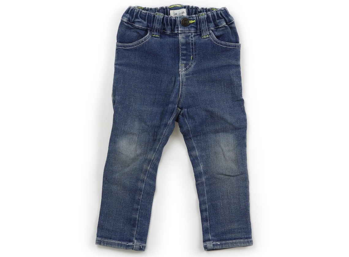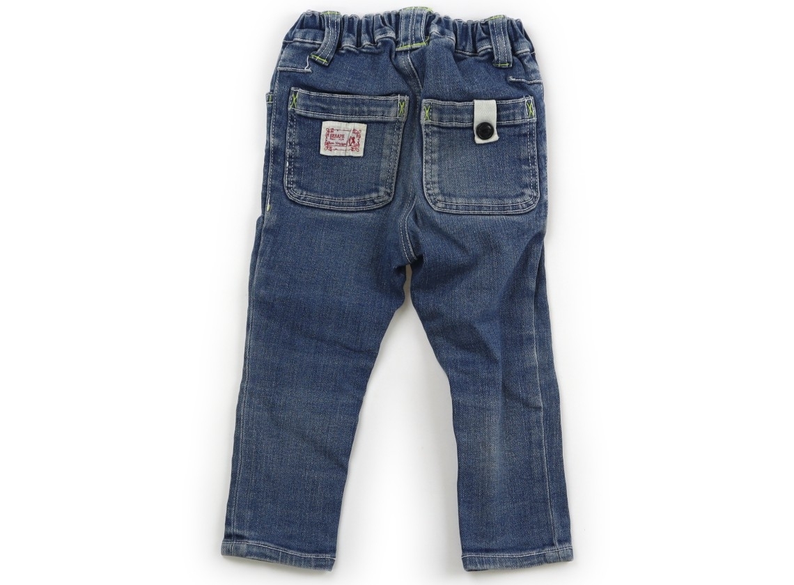 ストレッチデニム、ウエストは総ゴムです。お尻に色褪せ、膝や裾に薄汚れが見受けられます。外遊び用としていかがでしょうか?