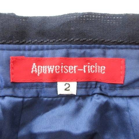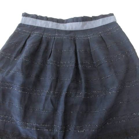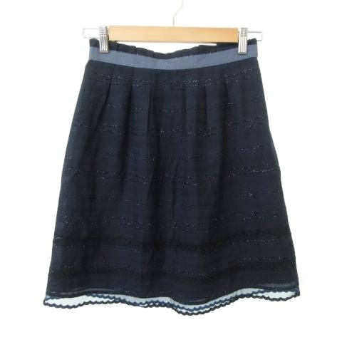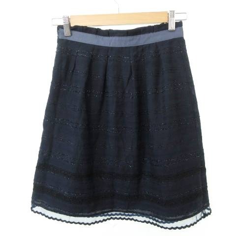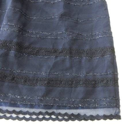 アプワイザーリッシェ Apuweiser-riche 美品 スカート ひざ丈 フレア レース 薄手 2 約Mサイズ 紺 ネイビー ■YHS5 レディース