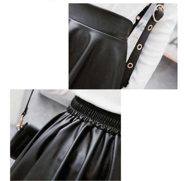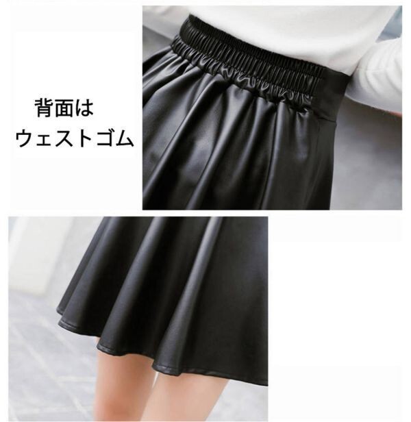 フレアスカート ブラック レディース ウェストゴム PUレザー ショート丈 フェイクレザー XLサイズ