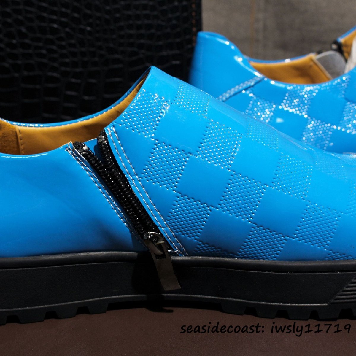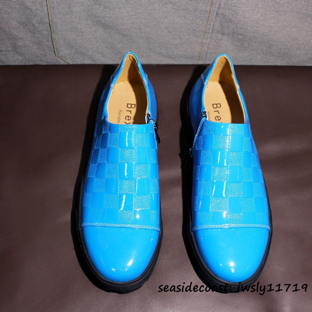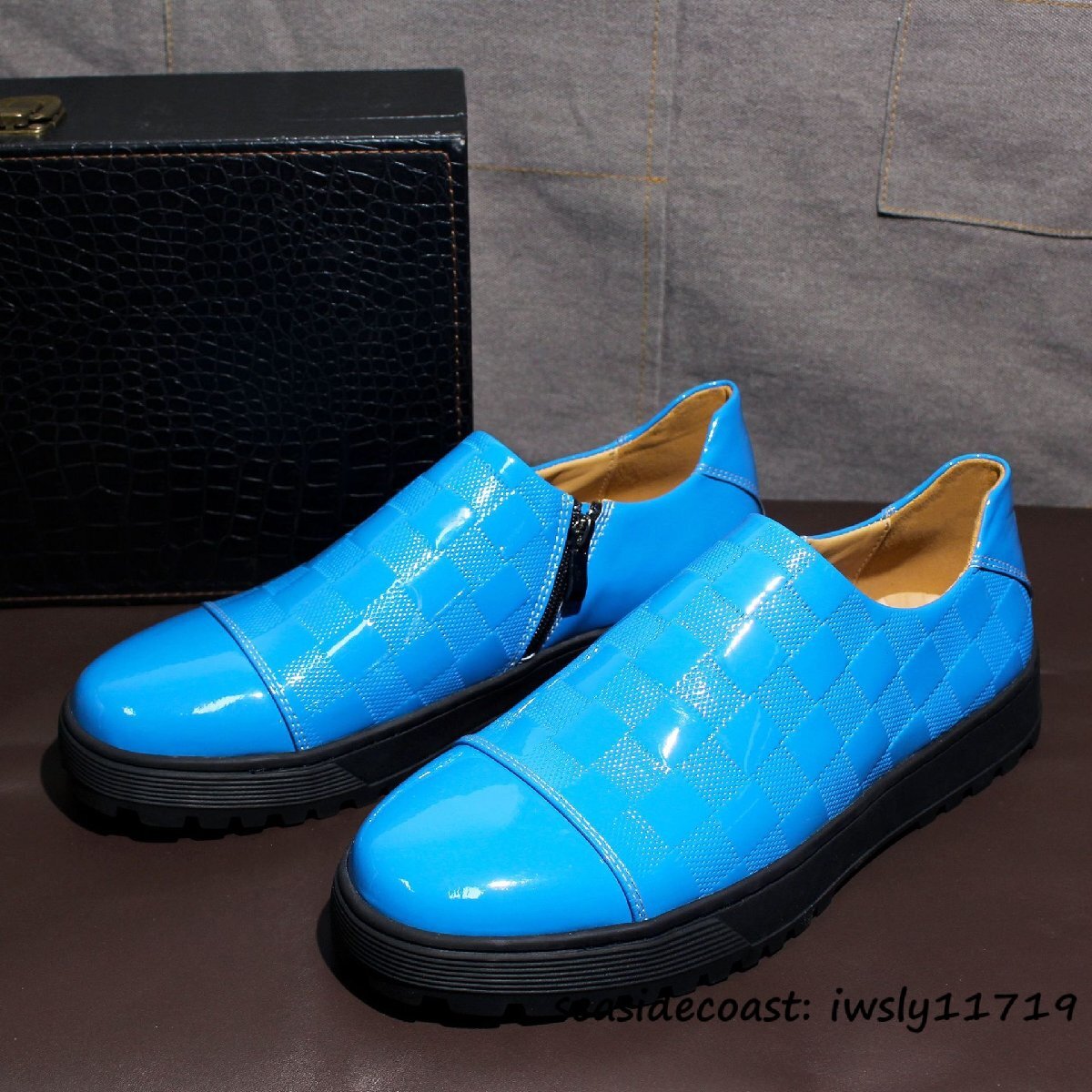 超美品■ローファー 本革 スリッポン メンズ 本牛革 ビジネスシューズ レザーシューズ 職人手作り ドライビングシューズ ブルー 26.5cm
