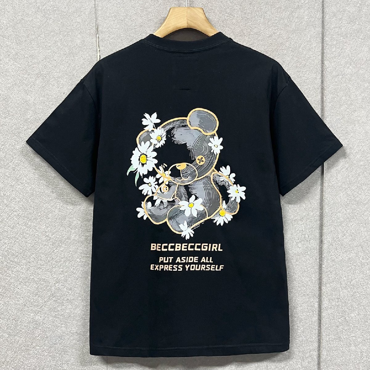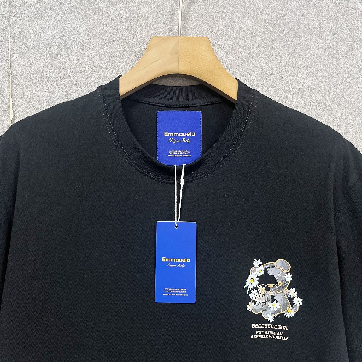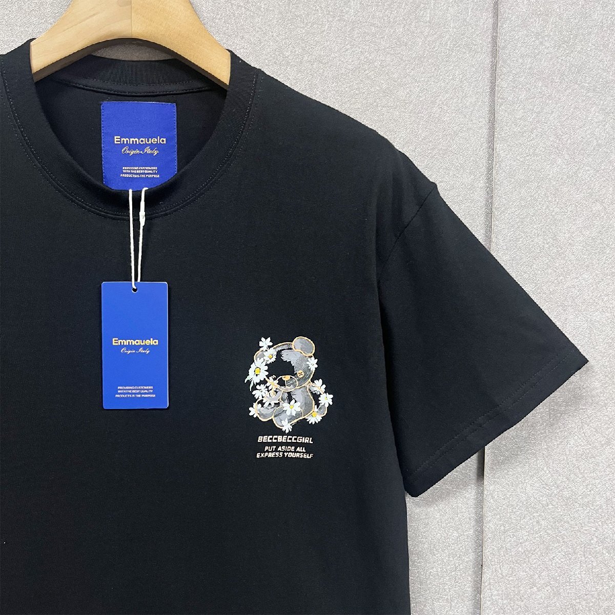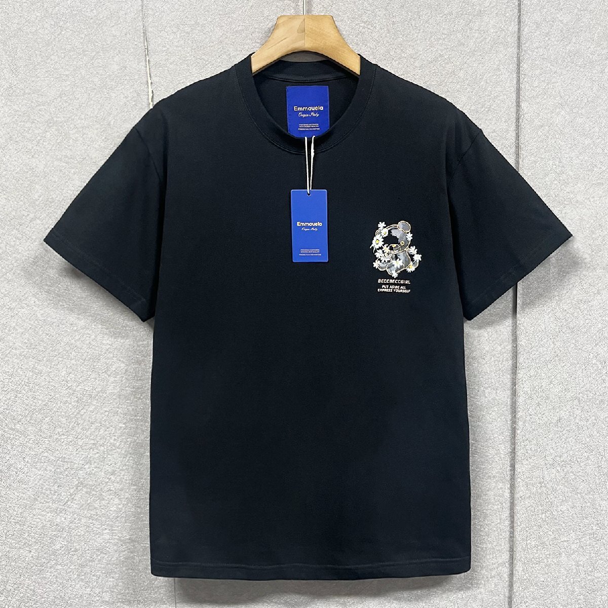 絶賛・半袖 Tシャツ 定価2万◆Emmauela・イタリア・ミラノ発◆綿100% 吸汗 通気 ソフト クマ柄 デイジー 可愛い プルオーバー 夏服 2XL/52
