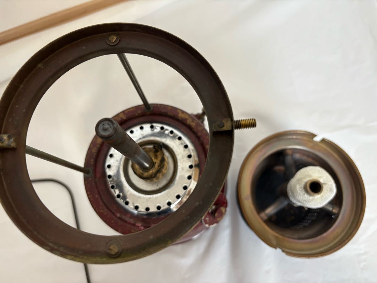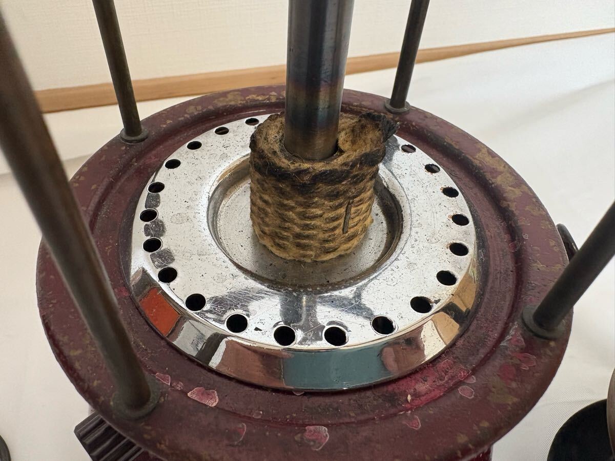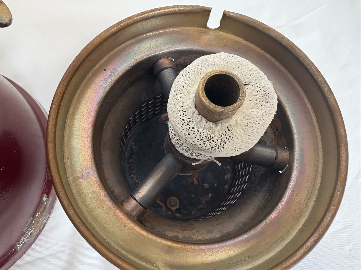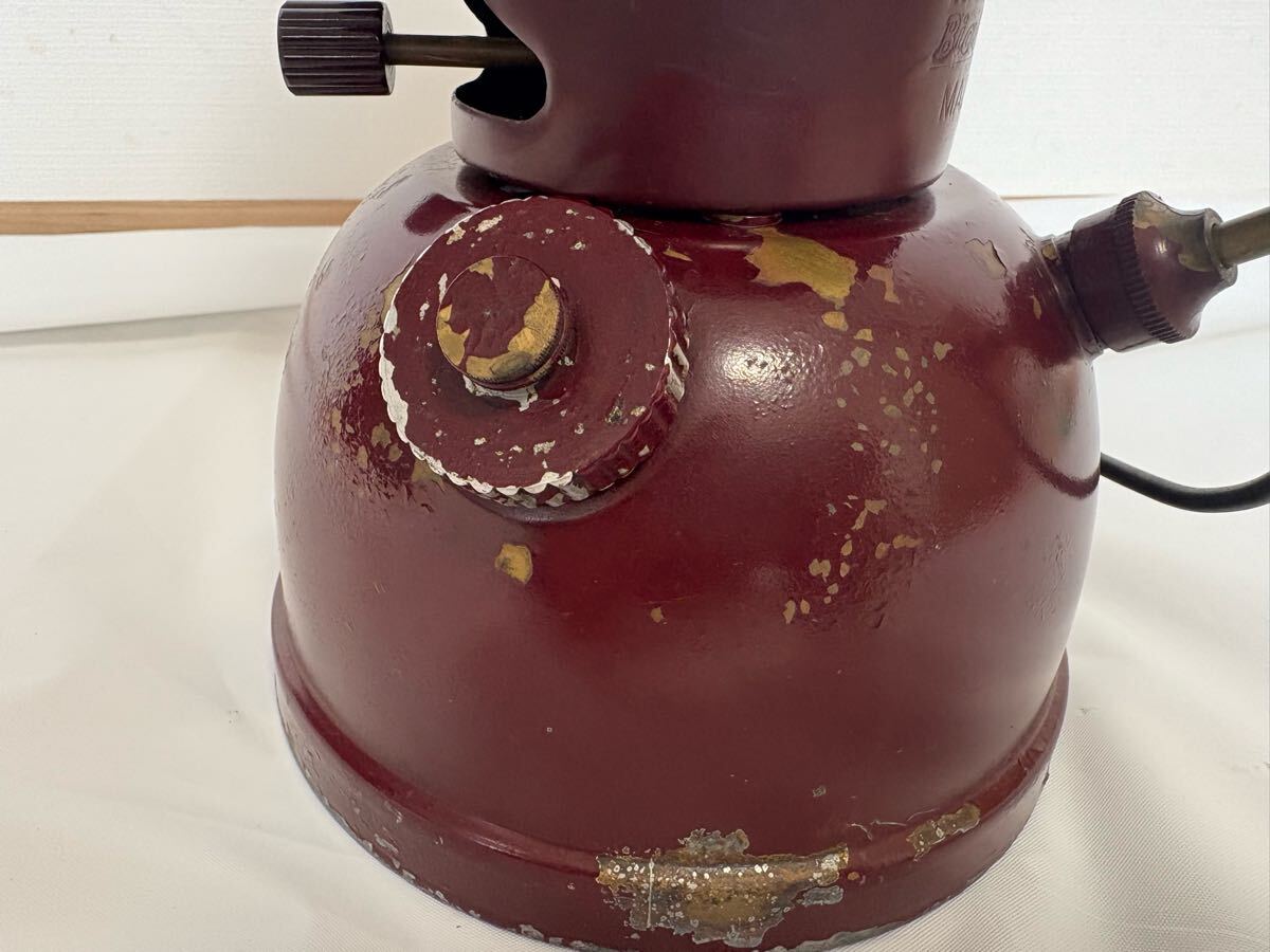 商品説明 | 品名 バイアラジン 300X 灯油 ランタン 状態 中古 塗装剥がれあり 入札される方は必ず最後までお読みください。 Bialaddin は1946年-1968年までのたった20年間だけ存在したブランドです。 VapaluxとWillis & Batesnoが提携し、生産されました。 真鍮製なのが特徴です。 当方は何年も前に入手しました。 やれ感に一目ぼれし購入したと記憶しております。 全分解後、洗浄、パッキン交換をして、1度使用しています。 当時の記憶が曖昧ですが、経年劣化を崩さないように極力ピカピカに磨かないように掃除したと記憶しております。 近年はガラスケースに保管して眺めているだけでしたので、使用するには再度メンテナンスが必要かもしれません。 現状はポンピング問題なく、バルブの開閉でエアーは噴出しています。 構造がシンプルなので、メンテナンスも容易です。 ノンリターンバルブもマイナスドライバーがあれば外せます。 渋いランタンです。 興味のある方入札をお待ちしています。 破損防止のため、ばらして発送します。 梱包サイズが少し大きくなりますのであらかじめご了承くださいませ。 状態については気づかない点があるかもしれませんので、不明な点は質問欄よりお願い致します。 古い物にご理解を頂けない方、状態が気になる方には向きませんので入札をお控え下さい。 |