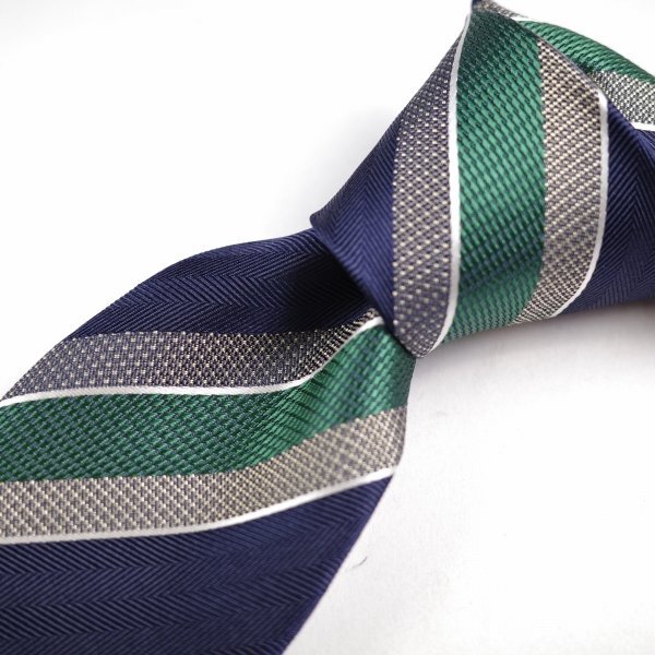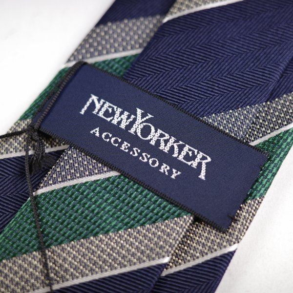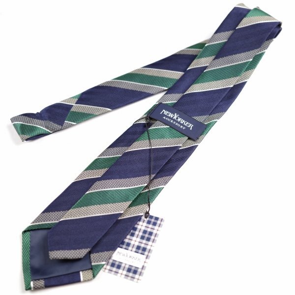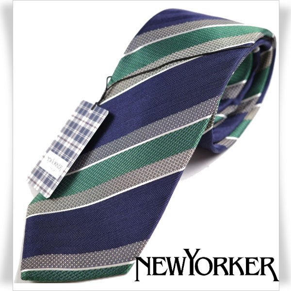 新品1円~★定価1.1万 NEWYORKER ニューヨーカー 日本製 シルク絹100%ネクタイ 織柄 ストライプ ネイビー 正規店本物 ◆5063◆