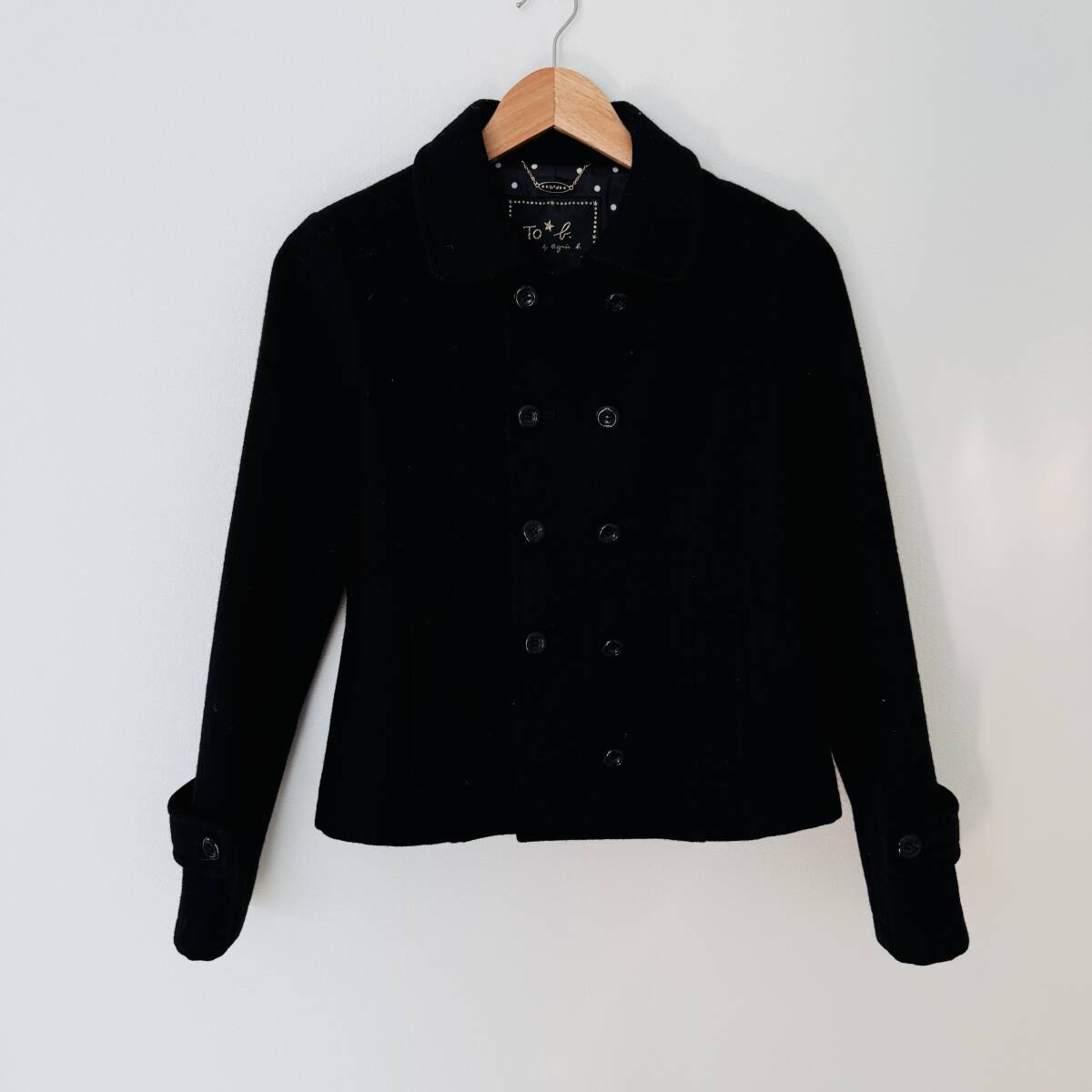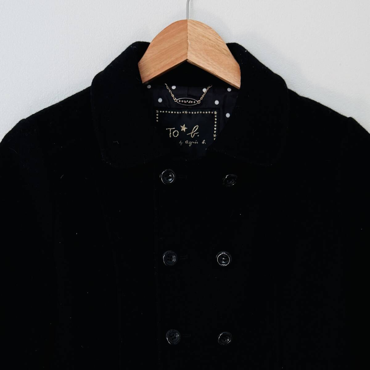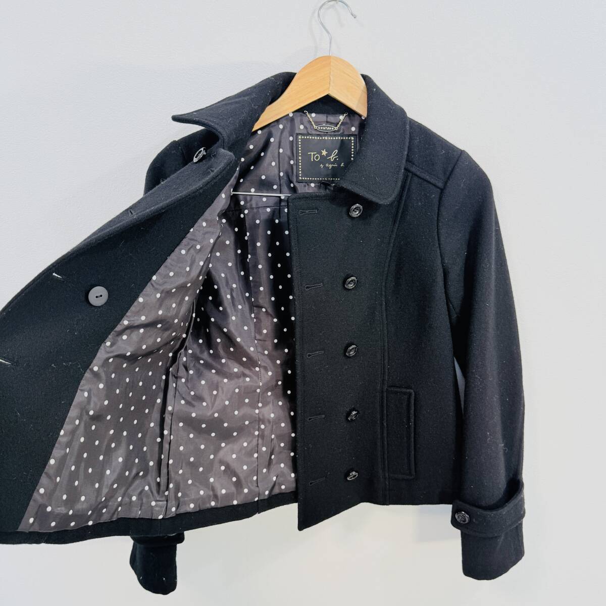 f1651ii To b. by agnes b(トゥービーバイアニエスべー)サイズ38(M位)Pコート ショート丈 ドット柄 ブラック レディース ダブルボタン