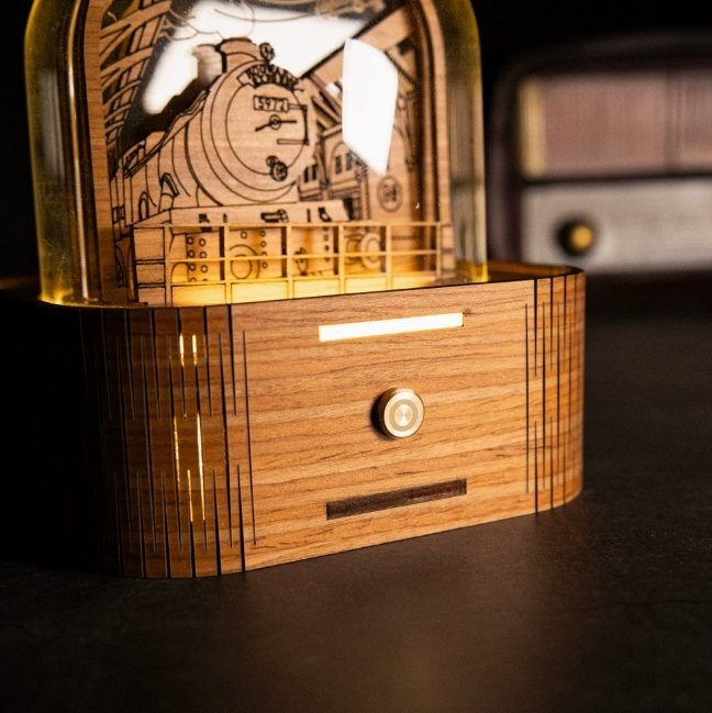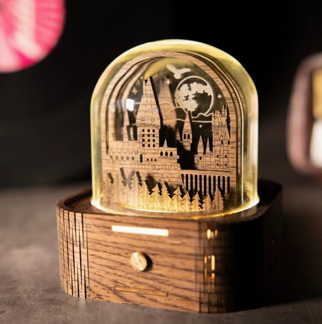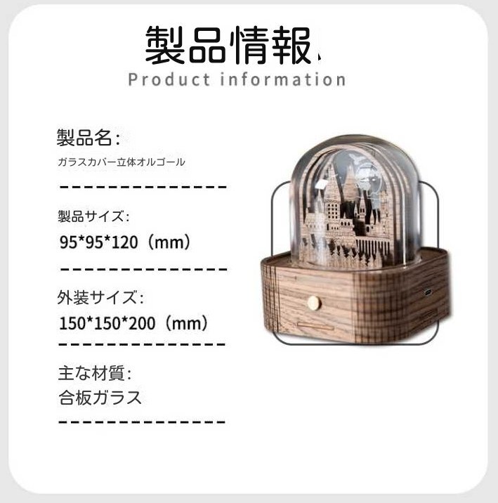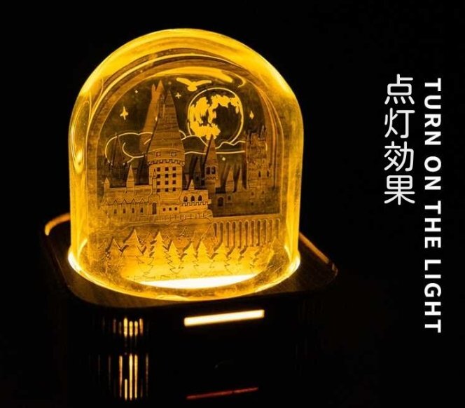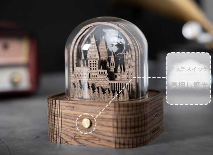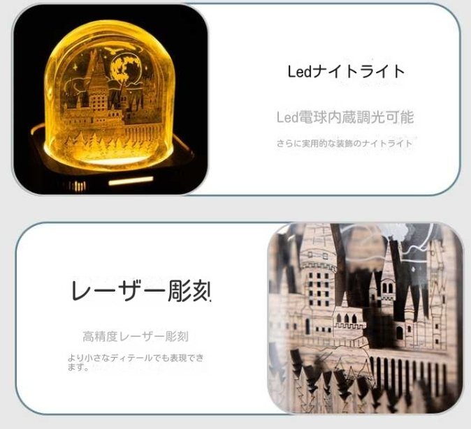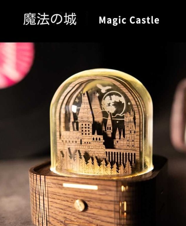 アイデアギフト魔法の城3 D立体小夜灯木質紙彫刻黒胡桃音楽箱