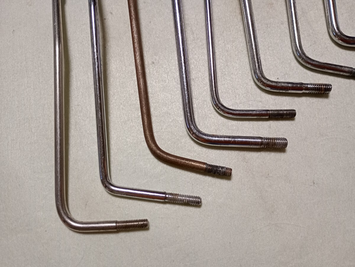 おそらくすべて国産ギターに付いていたものです。なかには古いものもあります。サイズは5ミリ、6ミリでインチはないと思います。状態はピンからキリまでです。