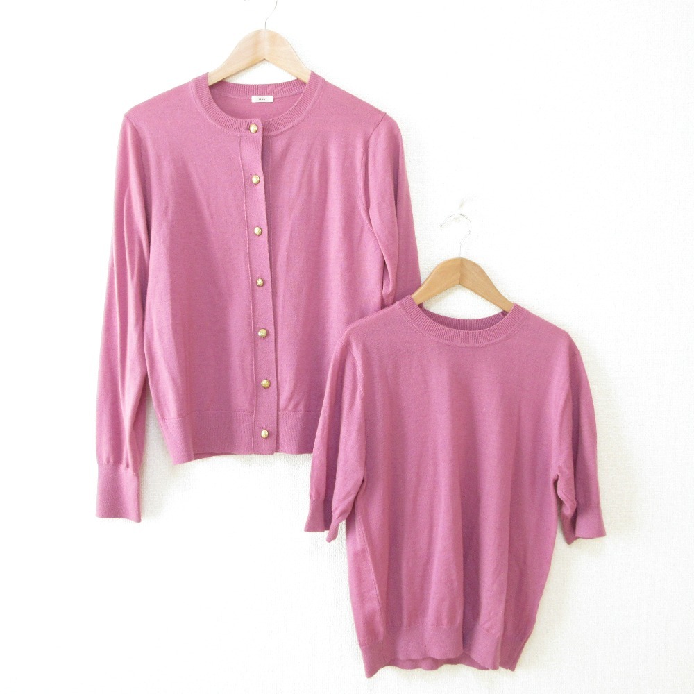 商品名:22AW IENA イエナ les mailles Washable アンサンブル クルーネックカーディガン+半袖カットソー 2点セット パープル