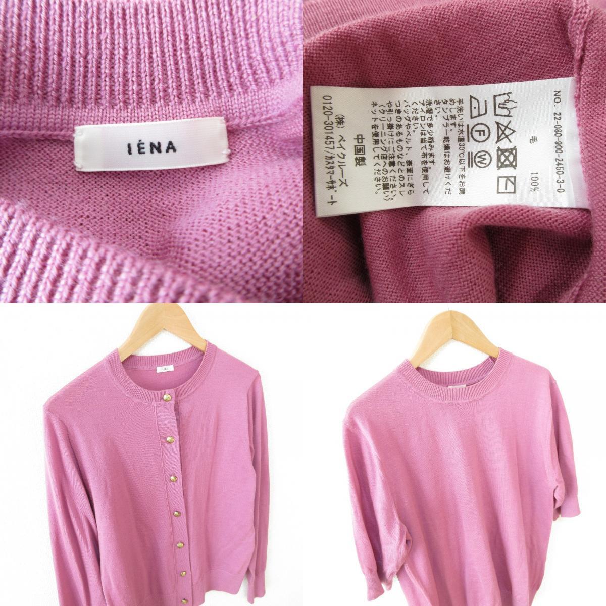 美品 22AW IENA イエナ les mailles Washable アンサンブル クルーネックカーディガン+半袖カットソー 2点セット パープル