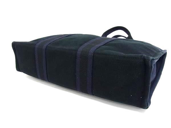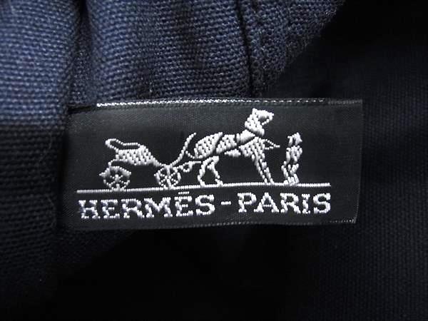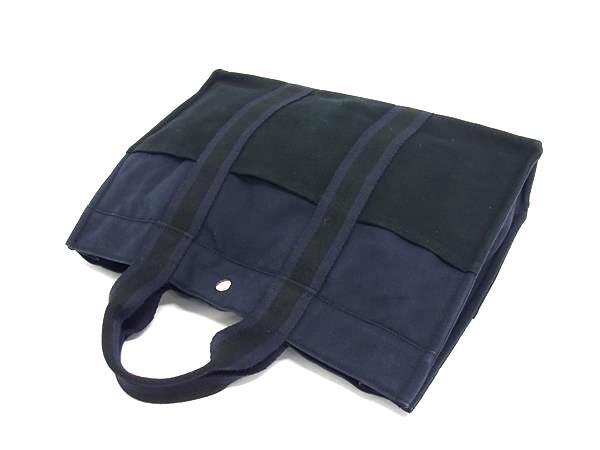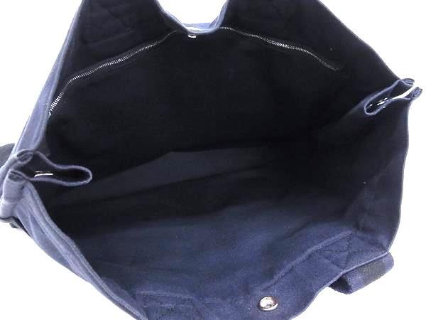 1円 ■美品■ HERMES エルメス フールトゥMM キャンバス シルバー金具 ハンドバッグ トートバッグ メンズ レディース ネイビー系 FV0252