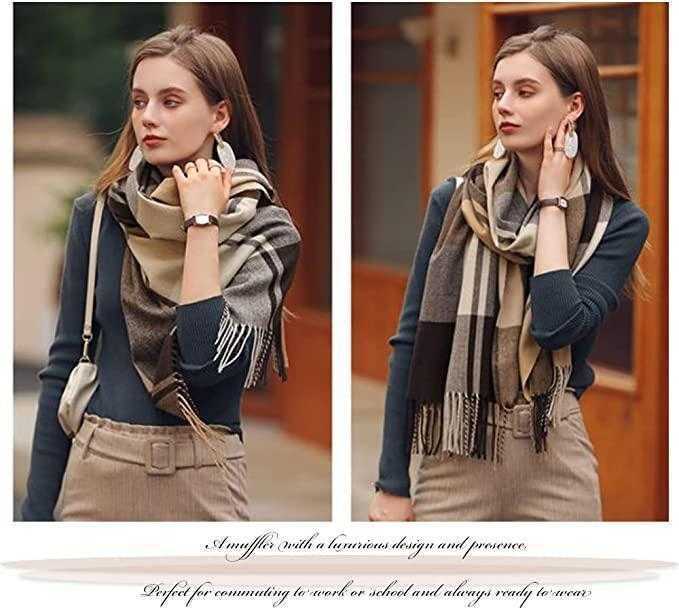 【滑らかな手触り】上質なフェイクカシミヤ生地とポリエステル素材を使用し、織りで仕上げたストールです,人気のチェック柄が特徴です。カシミヤタッチで肌触りに優しいです,ふんわりとして暖かいです,お客様により快適な装着体験を提供する。