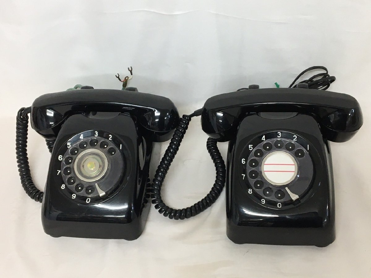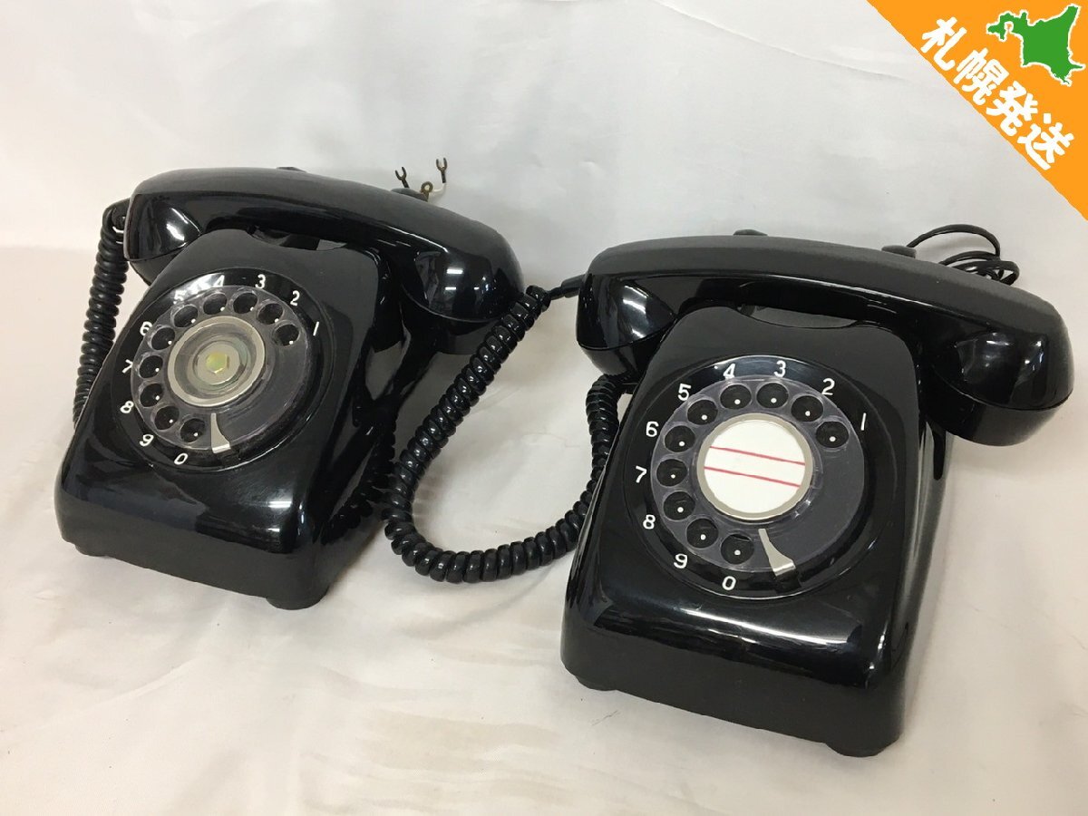 【R5-50749】昭和 レトロ 黒電話 2点 セット ダイヤル式 600-A2 電話機 日本電信 現状品【千円市場】
