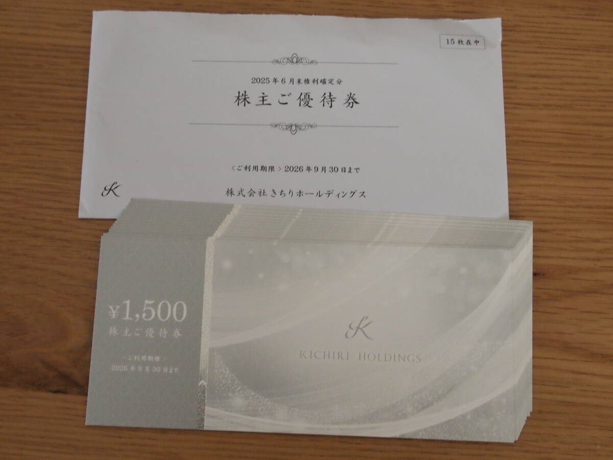 ●きちりホールディングス株主優待券 22500円分 2026.9.30●