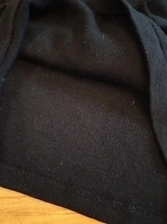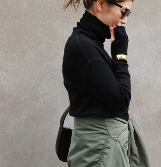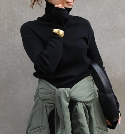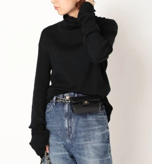 細かいリブは品があり、ぴったりし過ぎず、身体のラインをすっきり見せてくれます。
