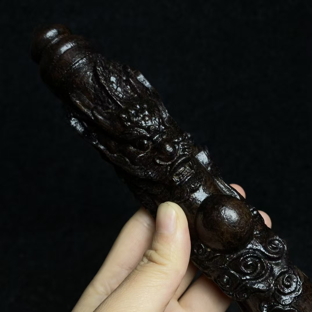 清時代 古香彫 神龍筆 如意 筆架 秘蔵 中国唐物 時代物 骨董 中国古美術 古家具 古置物 木製 東洋彫刻 古賞物 中国古玩929