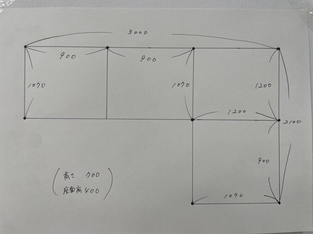 幅3000(900+900+1200)奥行き2100(1200+900)高さ700㎜