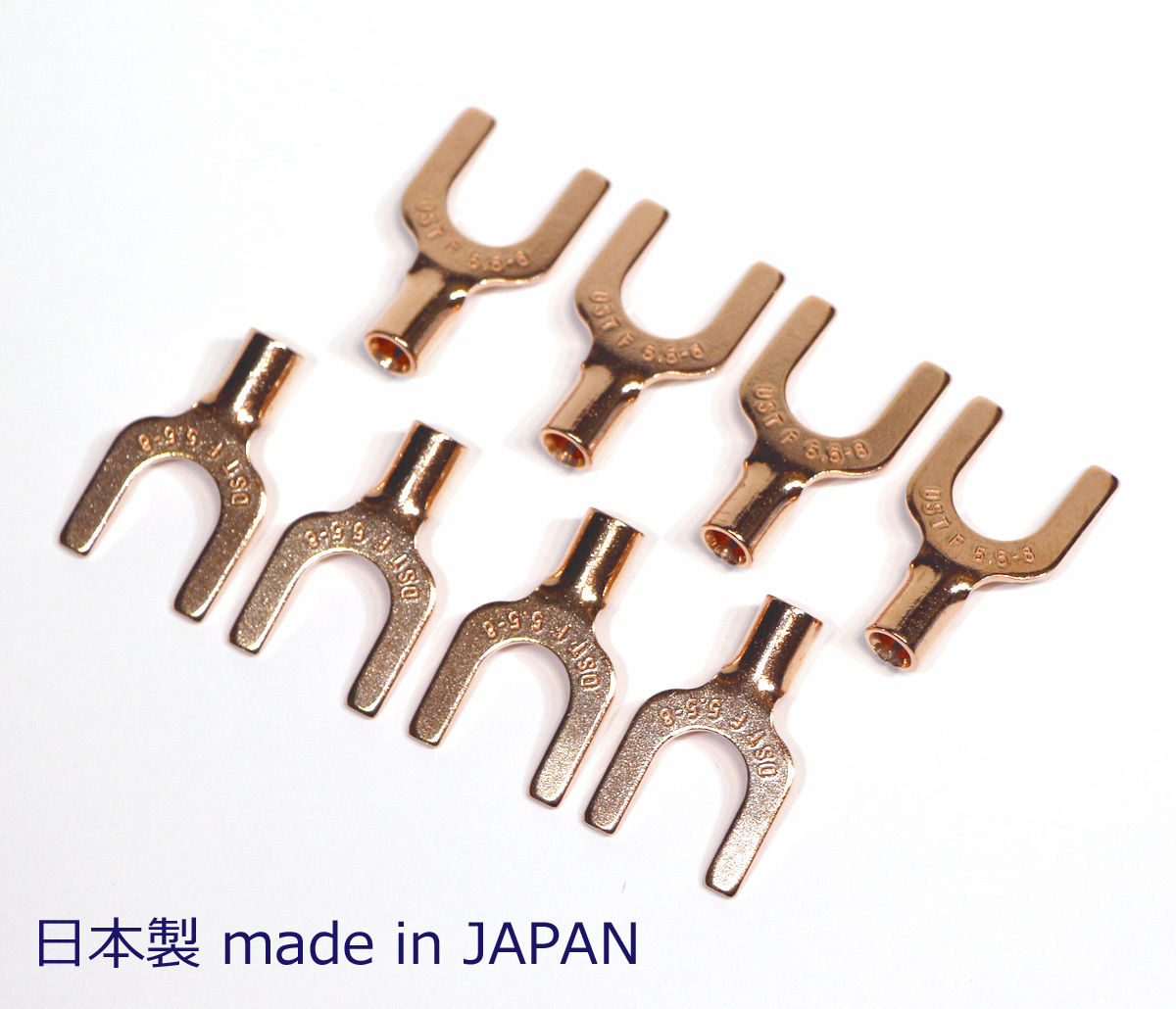 ネコポス無料!非メッキ OFC 高純度無酸素銅 8mmYラグ圧着端子 無メッキ スペード端子 8個set F5.5-8