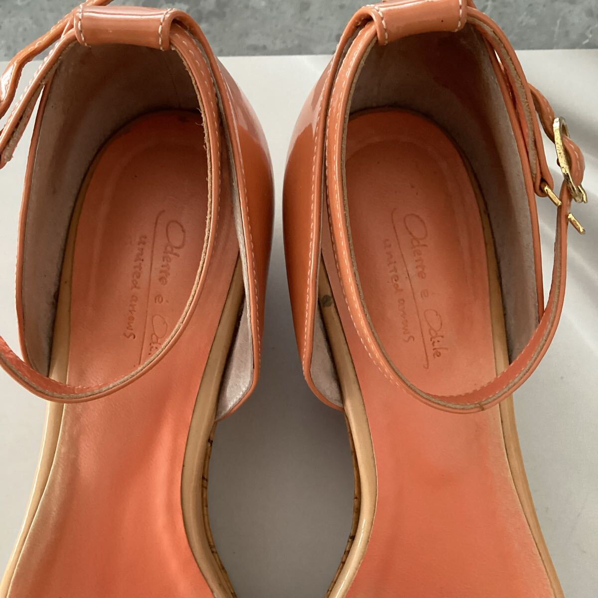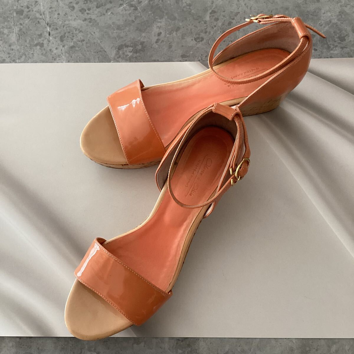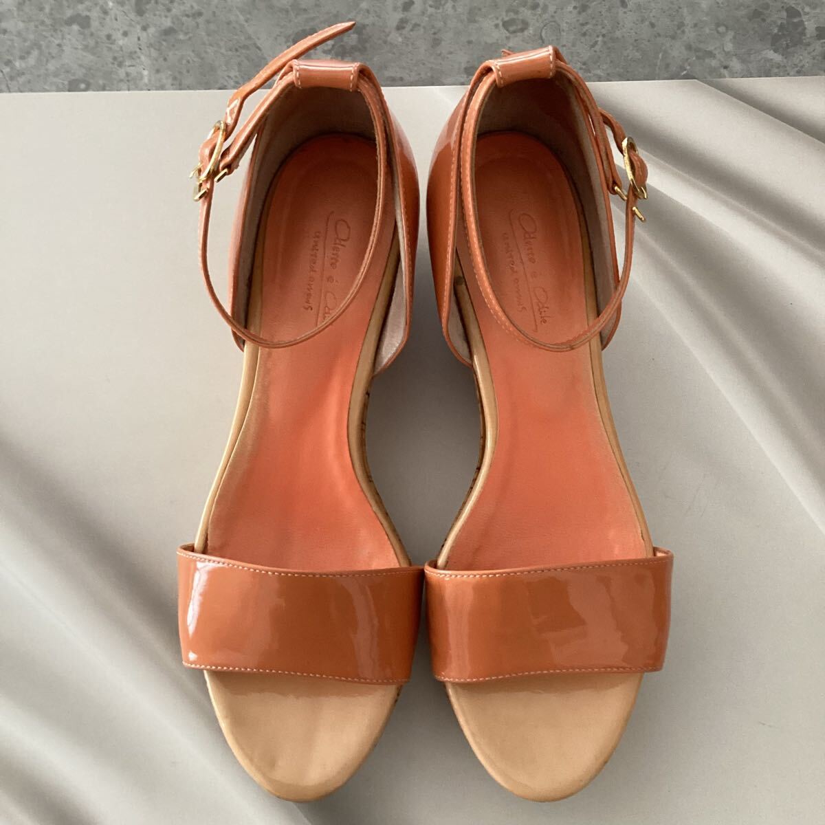 ■ オデットエオディール オレンジ エナメル ウェッジサンダル ■