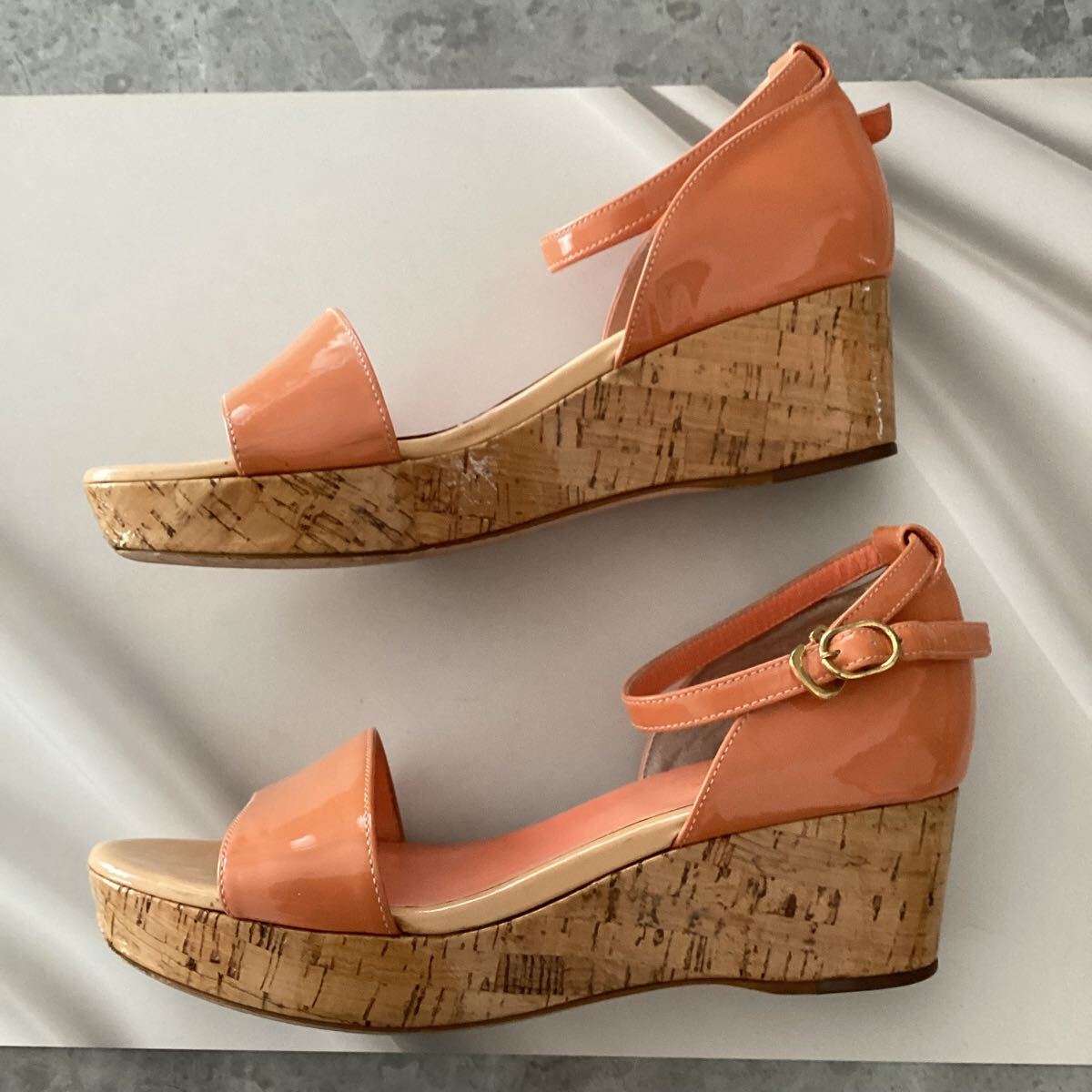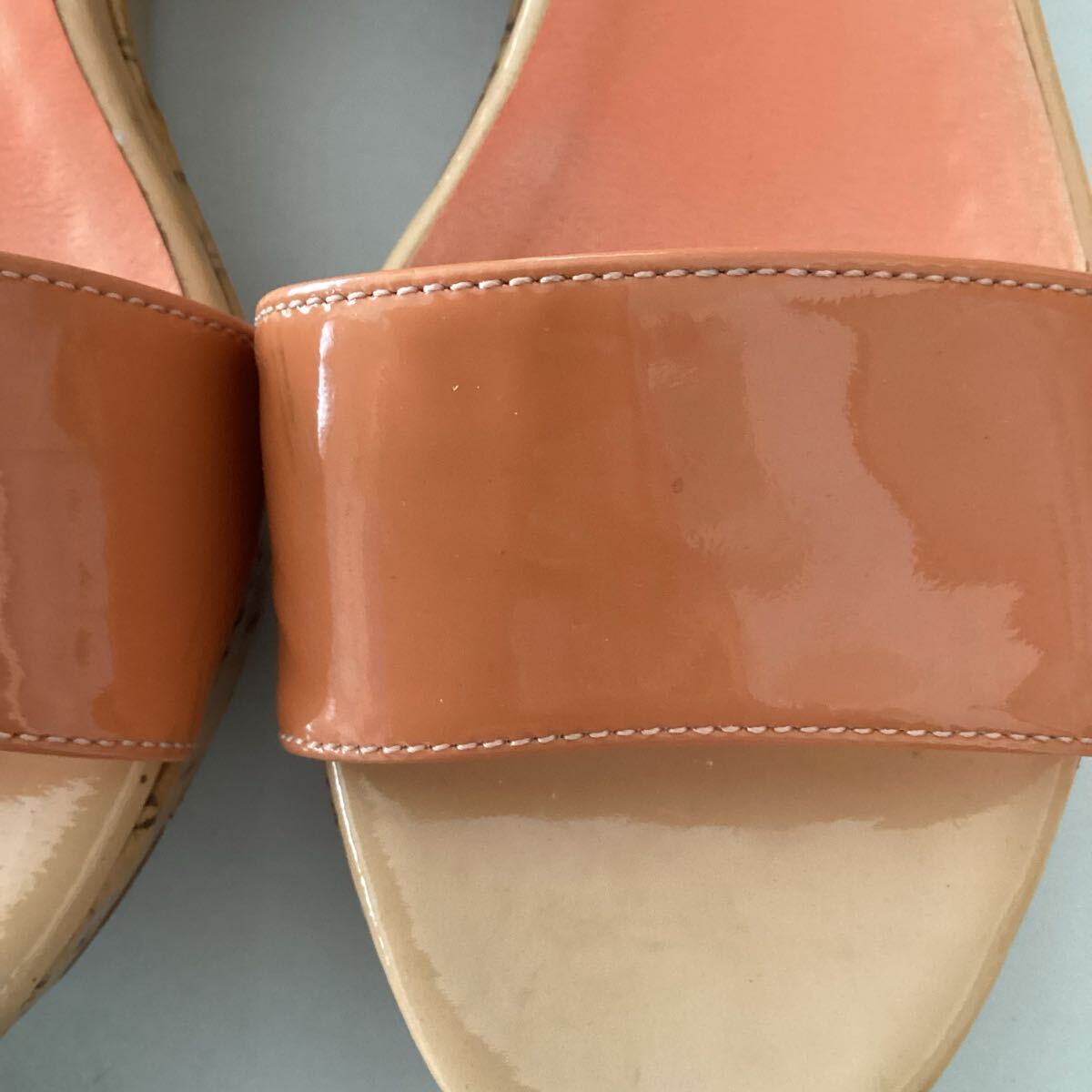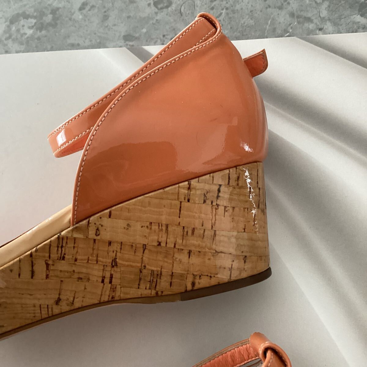 ■ オデットエオディール オレンジ エナメル ウェッジサンダル ■