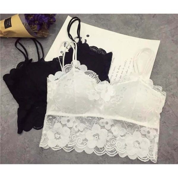 チューブトップ キャミ 総レース 花柄 パット付き ストレッチ レディース フリーサイズ ブラック