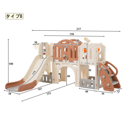 • 【機能満載】1、滑り台2、キャッスル型の通路3、バスケットゴール4、トンネル5、収納スペース6、ステップ 7、望遠鏡8、輪投げ
