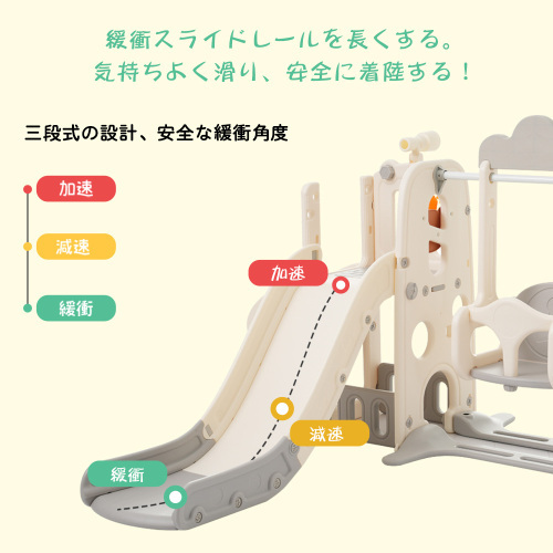 • 【楽しい滑り台】 準備スペースの面積がアップ↑背板が二つ設置されており、子供が転身しやすい。緩衝スライドレールを長くする。気持ちよく滑り、安全に着陸する!三段式の設計、安全な緩衝角度 :加速 減速 緩衝 お尻がドスンと落ない!