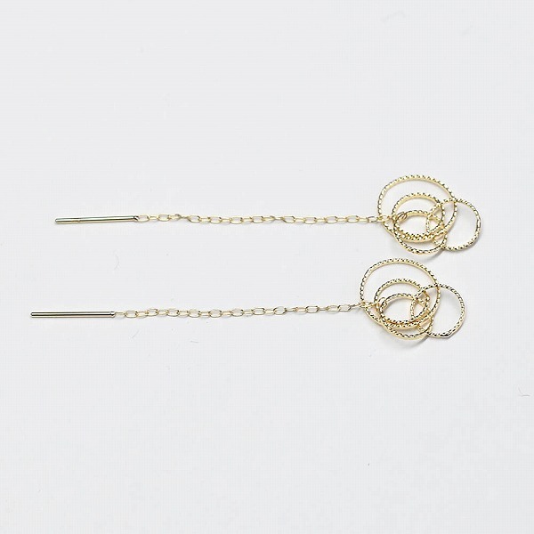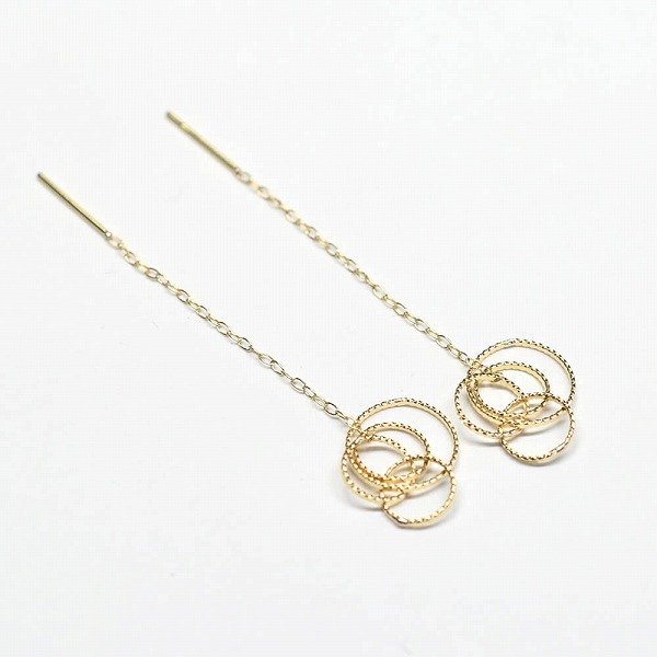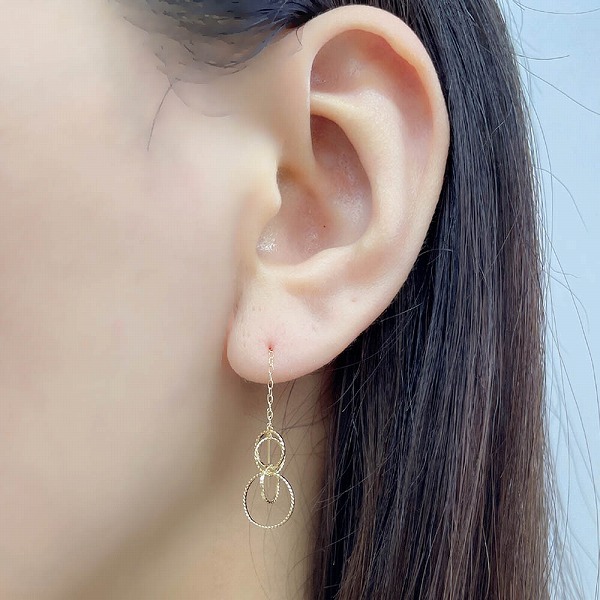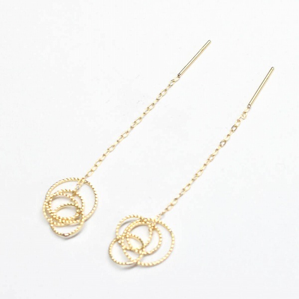 サークルモチーフを組み合わせ、アズキチェーンでぶら下げたK18アメリカンピアス。動きに合わせてモチーフが揺れるエレガントなピアスに仕上がっています。本物の輝きをお楽しみください♪